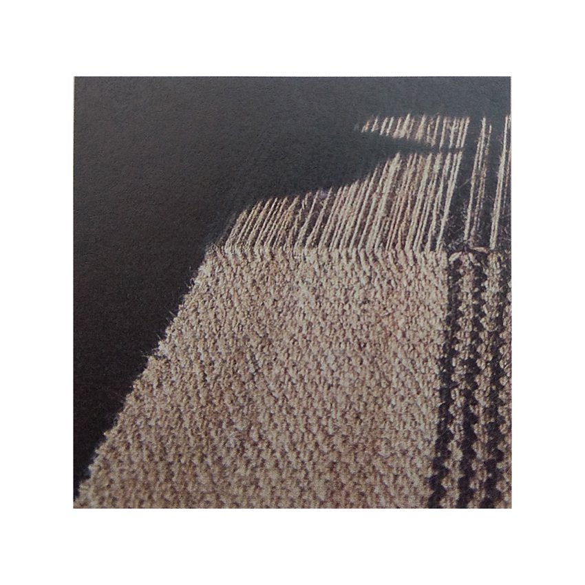 Теперь мы перейдем к непосредственному рассмотрению самого узора, который по-тибетски называется «ю» (тиб. yud). «Ю» состоит из контрастных линий, которые ткут по всей длине ткани. Обычно это сплошные линии, но иногда они могут состоять из квадратов или прямоугольников. Толщина линии может варьироваться от одной продольной нити основы ткани до пяти и более. Линии могут быть одиночными или же формировать связанные структуры или блоки. Одиночные сплошные линии называются джар-кан (тиб. jar kang). Одиночные линии, состоящие из квадратов или прямоугольников, называются ре-со (тиб. re so). Двойные линии называются луг-миг (тиб. lug mig) – «овечий глаз». Светлые и темные линии, формирующие «овечий глаз», должны быть одинаковой толщины, в противном случае, это будут уже две одиночные линии джар-кан-ни (тиб. jar kang gnyis). Структура, состоящая из трех линий одинаковой толщины с полосами основного цвета, называется ю-леб (тиб. yud leb). Если же они имеют разную толщину, то это три одиночные линии джар-кан-сум (тиб. jar kang gsum). Вот, пожалуй, и все основные структуры простого узора «ю».