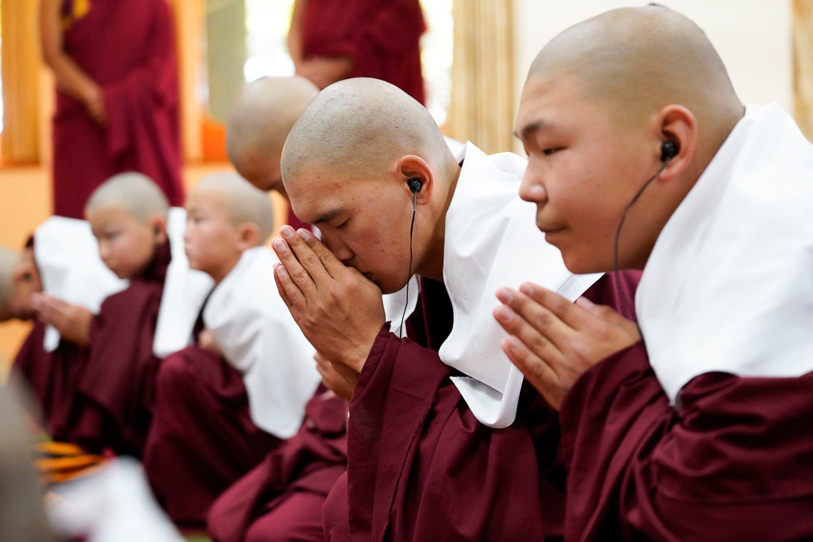 Послушники из Монголии направляются в зал собраний резиденции Его Святейшества Далай-ламы, чтобы принять монашеские обеты. Дхарамсала, Индия. 8 октября 2018 г. Фото: дост. Тензин Джампхел.Его Святейшество Далай-лама обращается к послушникам из Монголии в начале церемонии дарования монашеских обетов. Дхарамсала, Индия. 8 октября 2018 г. Фото: дост. Тензин Джампхел.Юные послушники из Монголии слушают перевод наставлений Его Святейшества Далай-ламы во время церемонии дарования монашеских обетов. Дхарамсала, Индия. 8 октября 2018 г. Фото: дост. Тензин Джампхел.