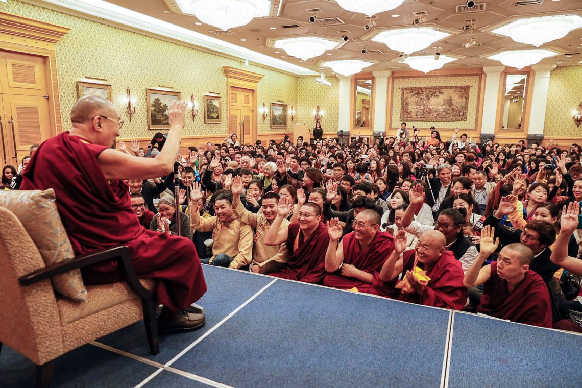 Токио, Япония, 20 ноября 2018 года – Сегодня в гостинице, беседуя с более чем тремястами тибетцами и бутанцами, Его Святейшество Далай-лама сказал, что приехал в Японию с коротким визитом. Он упомянул, что согласно данным археологических раскопок, люди жили в Тибете еще 35 тысяч лет назад. Он полагает, что если теории об африканском происхождении человека и дальнейшем расселении по всему миру верны, то первые люди должны были поселиться в Тибете раньше, чем в Китае. В пользу этого свидетельствуют и следы древней земледельческой культуры в Западном Тибете.