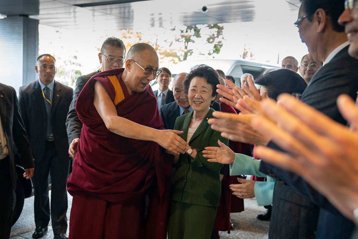 Его Святейшество Далай-лама прибывает в здание японского парламента на встречу с членами Всепартийной парламентской группы в поддержку Тибета. Фото: Тензин Джигме.