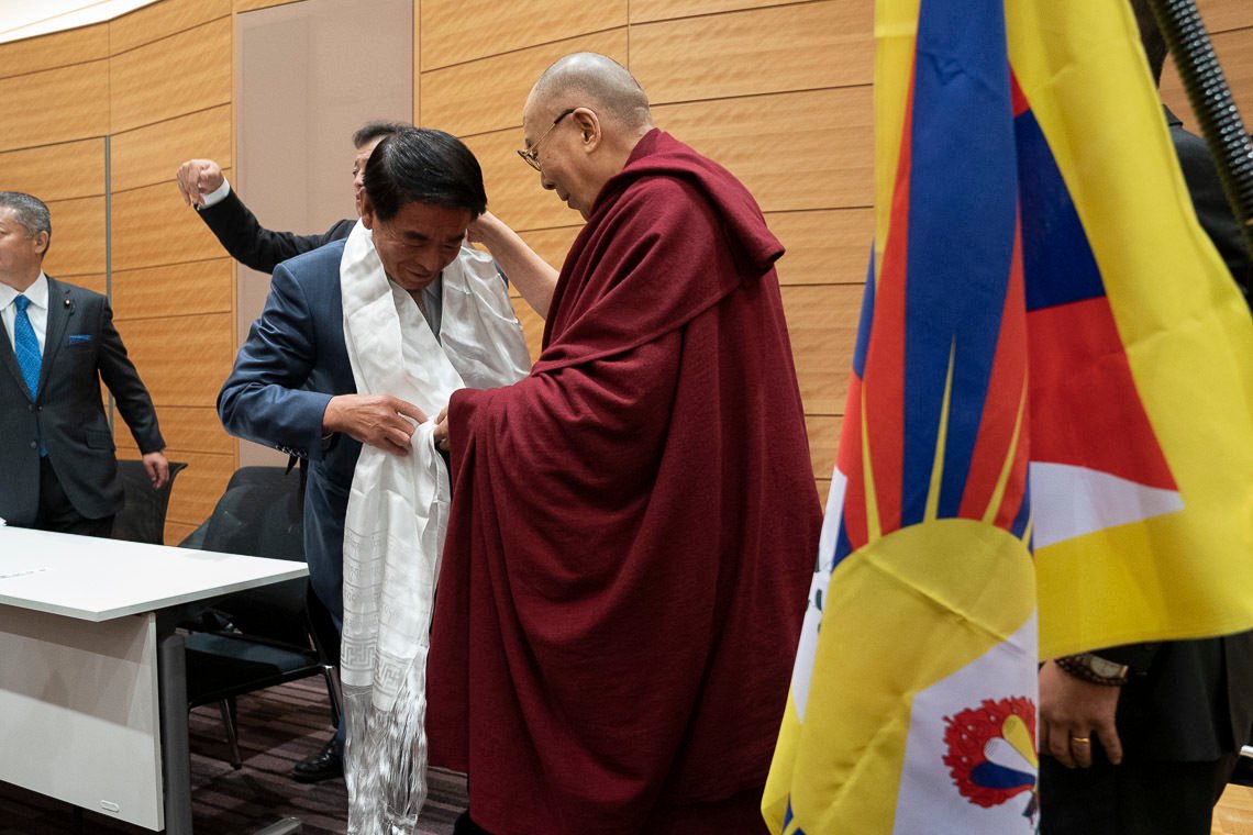 Заместитель председателя Всепартийной парламентской группы в поддержку Тибета Шу Ватанабе, представитель Демократической партии Японии, заметил: «Уже в четвертый раз мы приглашаем Его Святейшество в японский парламент. Институту Далай-лам более четырехсот лет. Хотя Его Святейшество лидер тибетского народа, он постоянно подчеркивает, как важно думать о благополучии всех семи миллиардов людей, живущих сегодня на Земле. Он призывает к продвижению сострадания. Он говорит, что ценит Японию как высокоразвитую страну, сумевшую сберечь свои традиционные ценности и культуру».