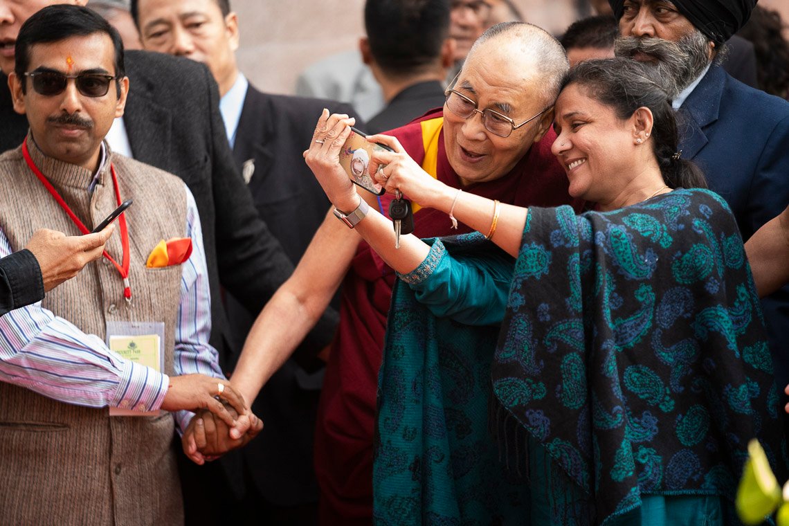 Когда Его Святейшество покидал зал, вокруг теснилось множество людей, желавших увидеть его поближе. Его Святейшество перебрасывался парой слов с одними, пожимал руки другим, а с некоторыми даже сфотографировался на память, после чего вернулся в свой отель.
