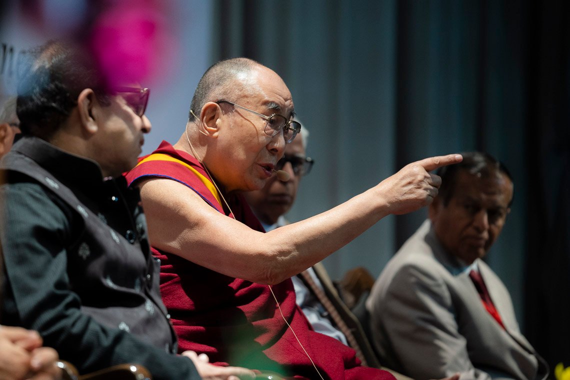 Бывший телеведущий новостей Викрам Чандра провел сессию вопросов и ответов. Его Святейшество пояснил, что для изменения материалистичного курса современного образования и материалистического образа жизни потребуется не меньше 20-30 лет, за это время вырастет новое поколение, которому внутренние ценности будут прививаться с детского сада и до университета. По мнению Его Святейшества, для этого нам понадобится ясное видение цели и четкое представление о том, как развивать в людях душевную теплоту. Он добавил, что здесь могут быть полезными идеи квантовой физики о том, что вещи не существуют так, как нам кажется, и понимание обширной роли ментальных проекций.