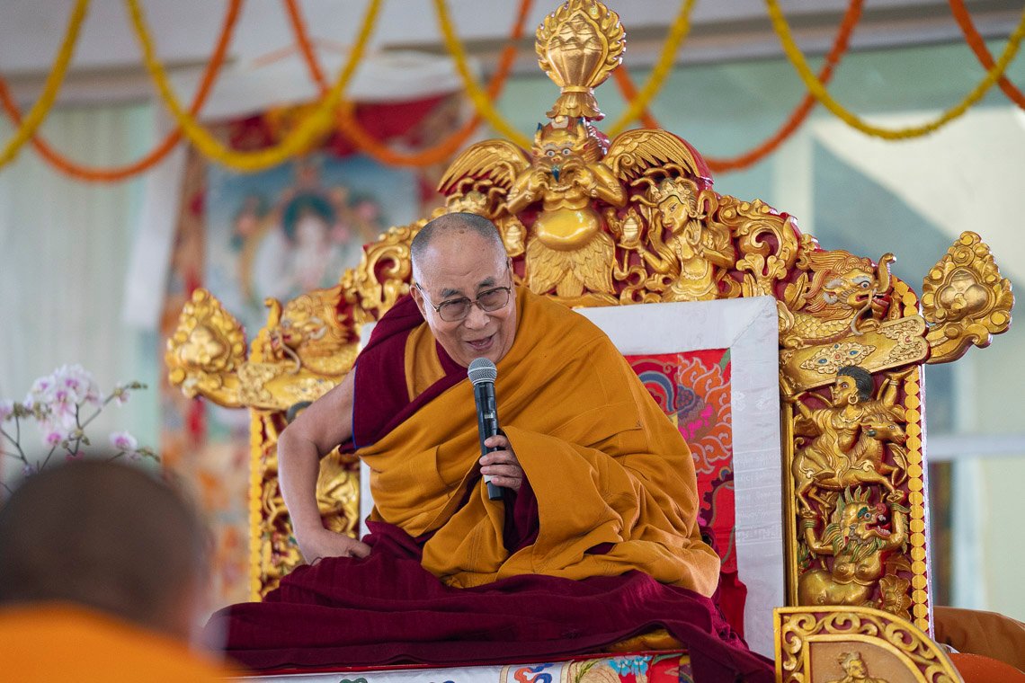 Его Святейшество Далай-лама обращается к собравшимся во время молебна о долголетии на площадке Калачакры в Бодхгае (Индия, штат Бихар). 31 декабря 2018 г. Фото: Лобсанг Церинг