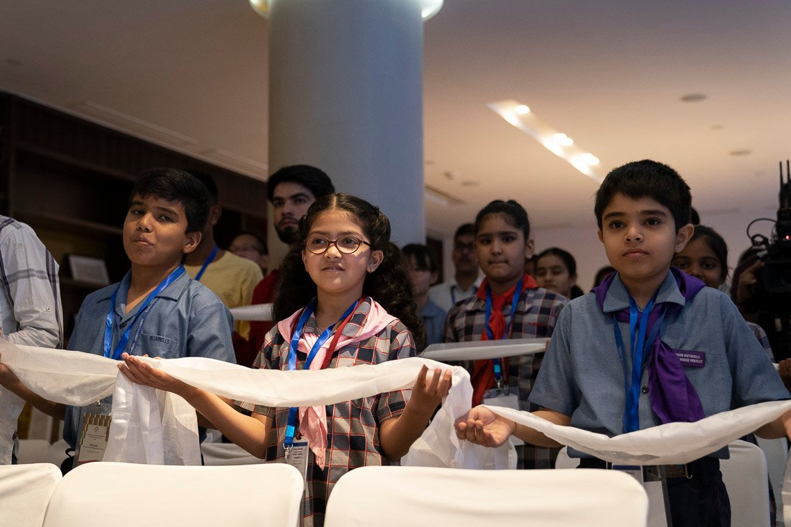 Журналисты во время пресс-конференции, приуроченной к запуску школьной программы социального, эмоционального и этического обучения (СЭЭО). Фото: Тензин Чойджор.
