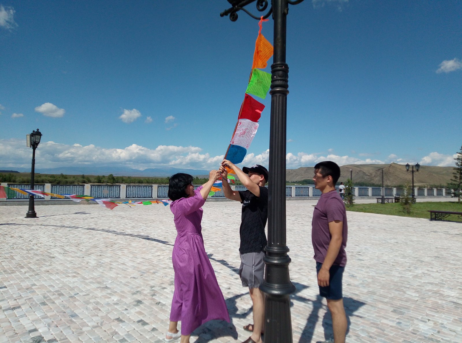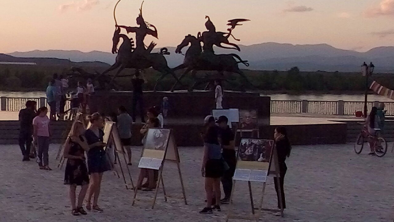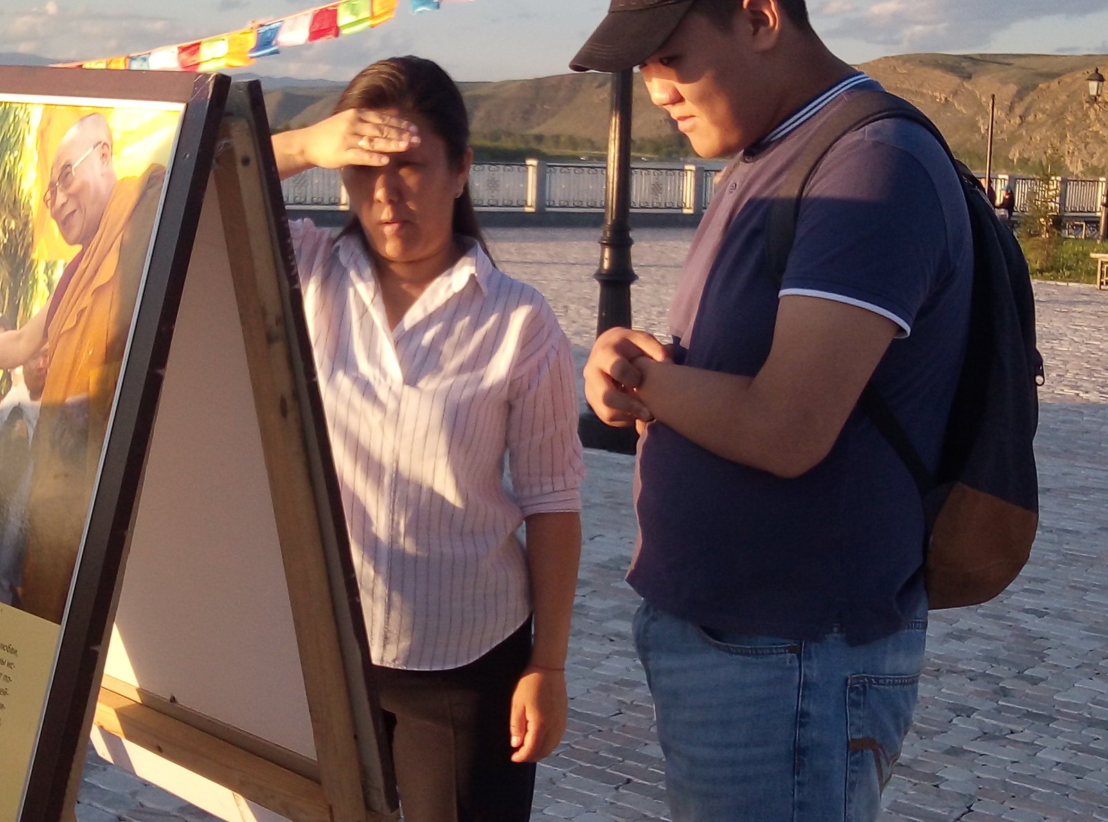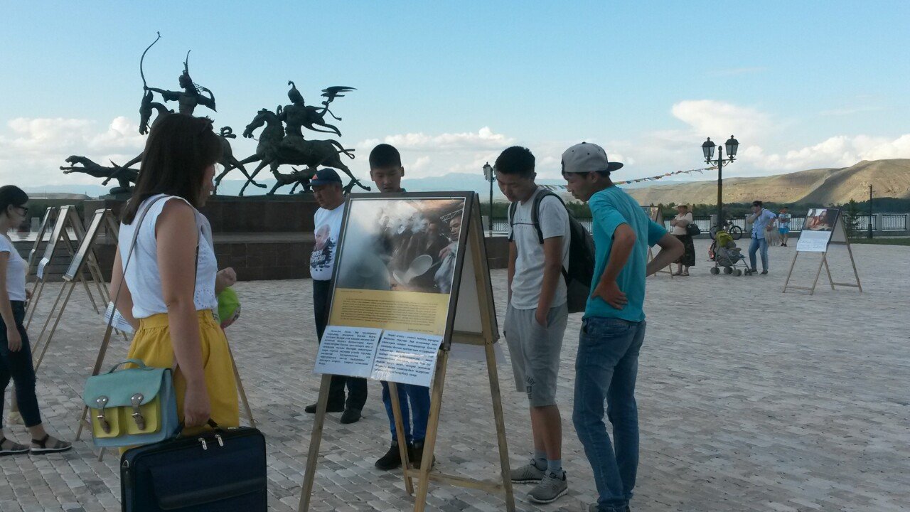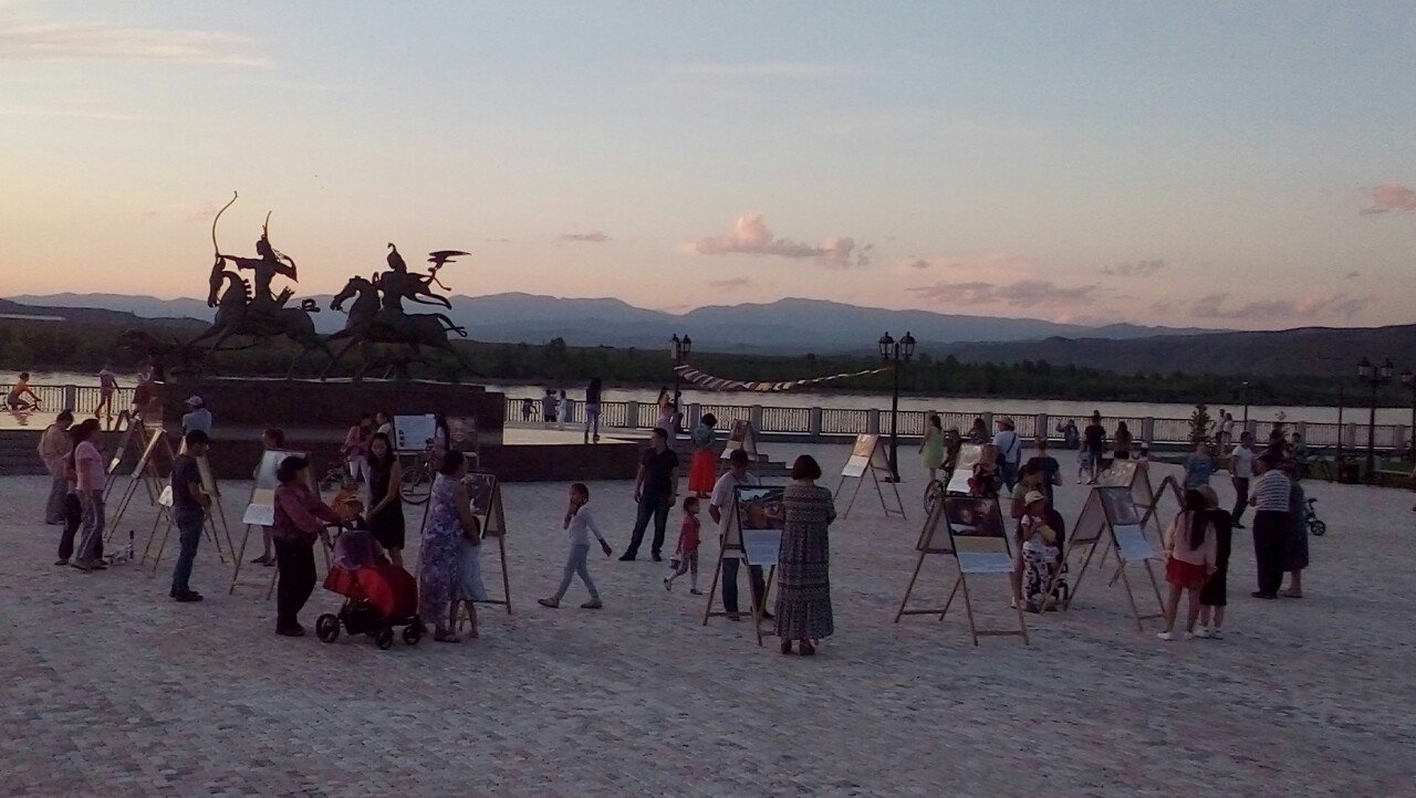 В особенном для тувинцев месте – на площадке амфитеатра знаменитого скульптурного комплекса «Центр Азии» в Кызыле – также царила праздничная атмосфера. На набережной Енисея открылась выставка красочных фотографий Его Святейшества. Каждое изображение ласкало взор живой улыбкой Учителя или несло его послание в виде цитат и советов для повседневной жизни. Слова Его Святейшества были переведены на тувинский язык, и посетители отметили, что на родном языке цитаты звучат для них более проникновенно.