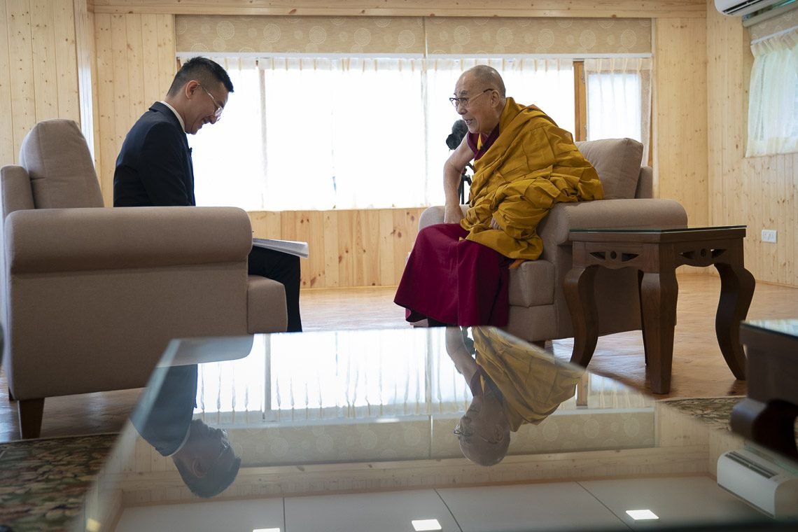 Его Святейшество Далай-лама дает интервью тайваньскому телеканалу Хакка в монастыре Он Нгари. Фото: Тензин Чойджор (офис ЕСДЛ).