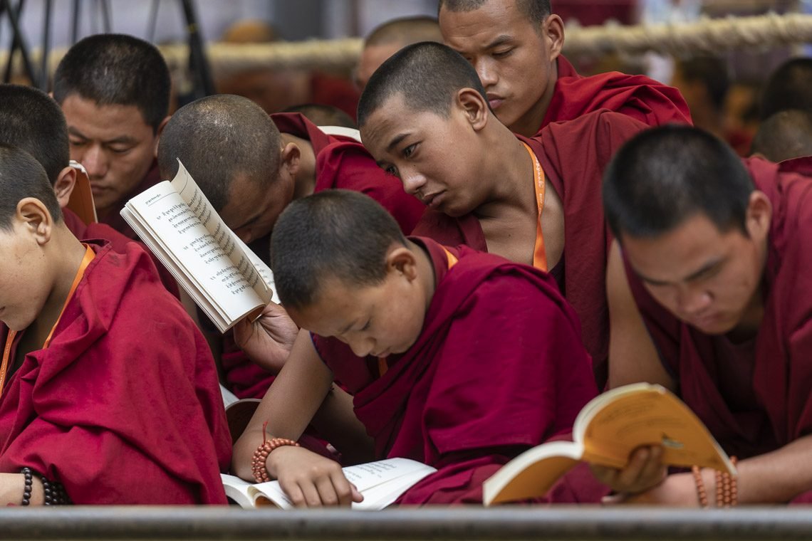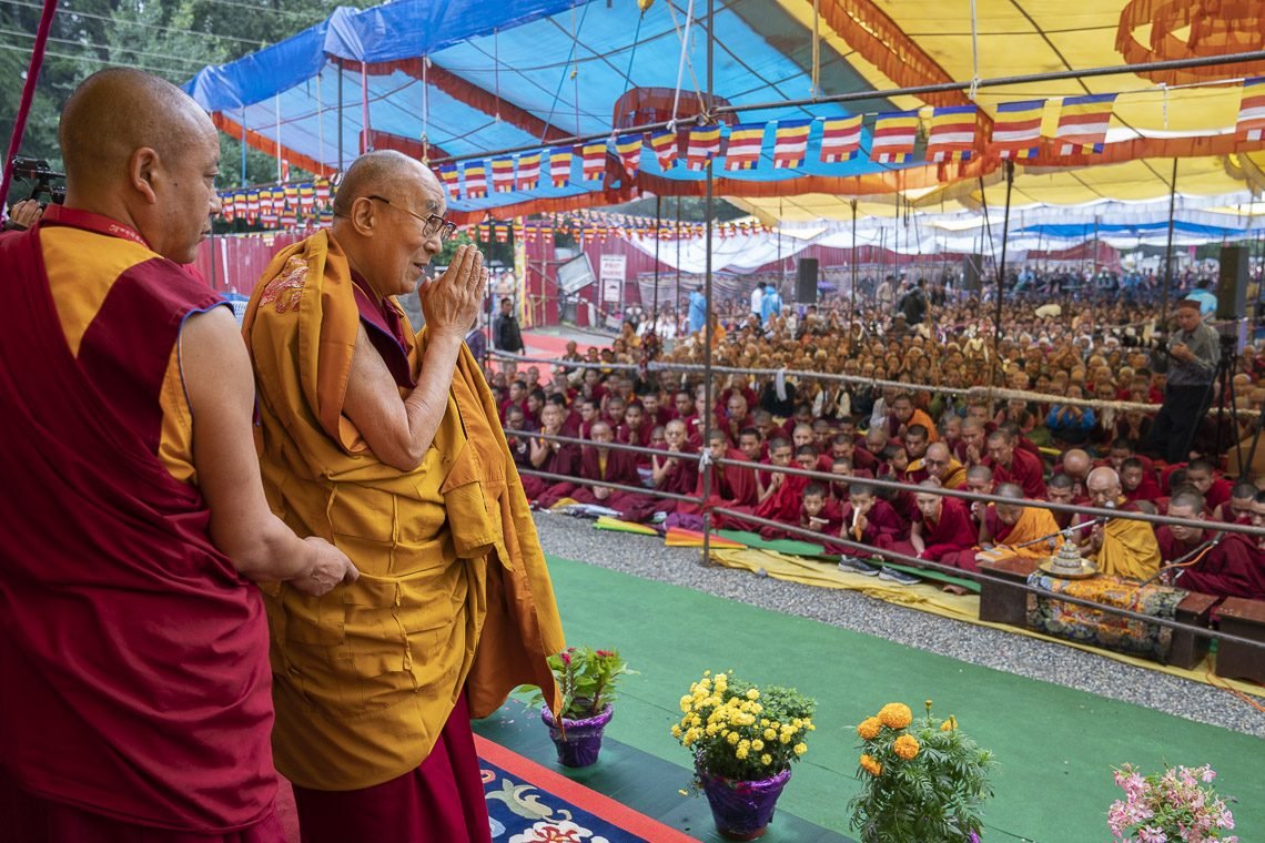 Бушевавший всю ночь ливень затопил площадку для проведения учений, однако к прибытию Его Святейшества дождь прекратился, и земля почти высохла. Перед началом сессии монахи возглавили чтение первой главы сочинения Чандракирти «Вступление на срединный путь» (Мадхьямака-аватара).
