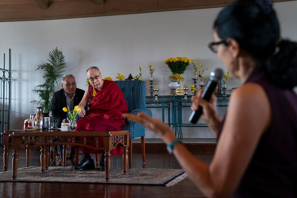 На вопрос о том, почему здравый смысл кажется большой редкостью, Его Святейшество ответил, что современная образовательная система, учрежденная в Индии британцами, уделяет мало внимания тренировке ума. В результате люди не имеют ни малейшего представления о том, как обуздать разрушительные эмоции и просто успокоить свой ум. В заключение беседы Его Святейшество заверил, что в действительности нам под силу преобразовать свой ум и эмоции – это не случится в одночасье, но, прилагая усилия, мы достигнем поставленной цели.
