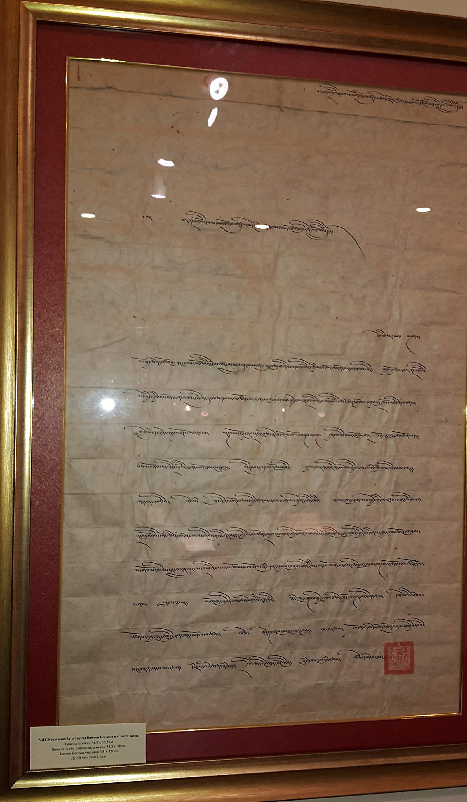 Большой интерес представляют экспонированные на выставке лундэны (буллы, пророчества теократического правителя) Богдо-гэгэна VIII. Они довольно широко известны по нескольким изданиям, но оригиналы и ксилографические копии видели немногие. Это небольшие листы ксилографов или рукописи, иногда собранные в книжечки, на тибетском или монгольском языке, напоминающие тибетские буддийские книги того времени. Своего исследования ждет заверенный печатью ксилограф указа, ниспосланного из храма чойджона Нэчунга о Джебцзундабме VIII.