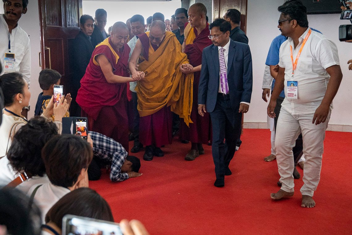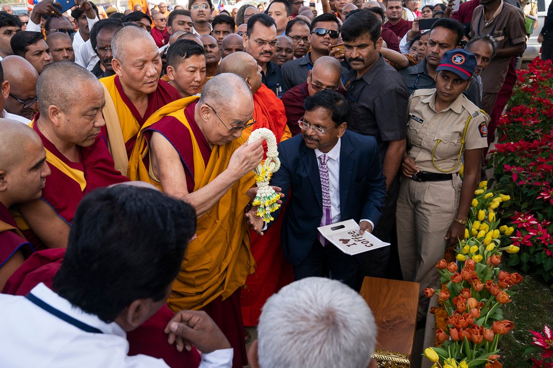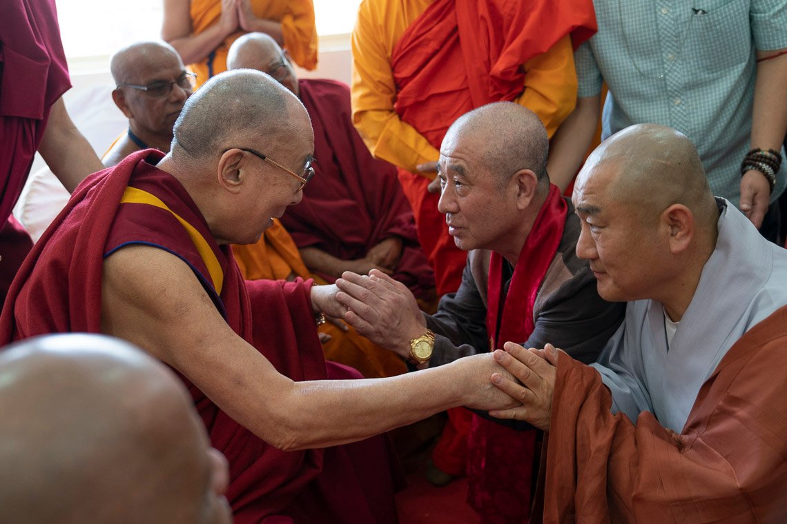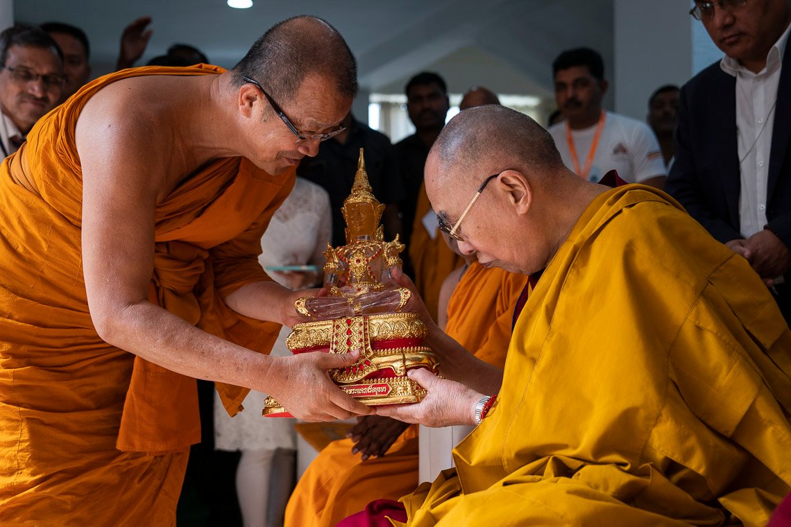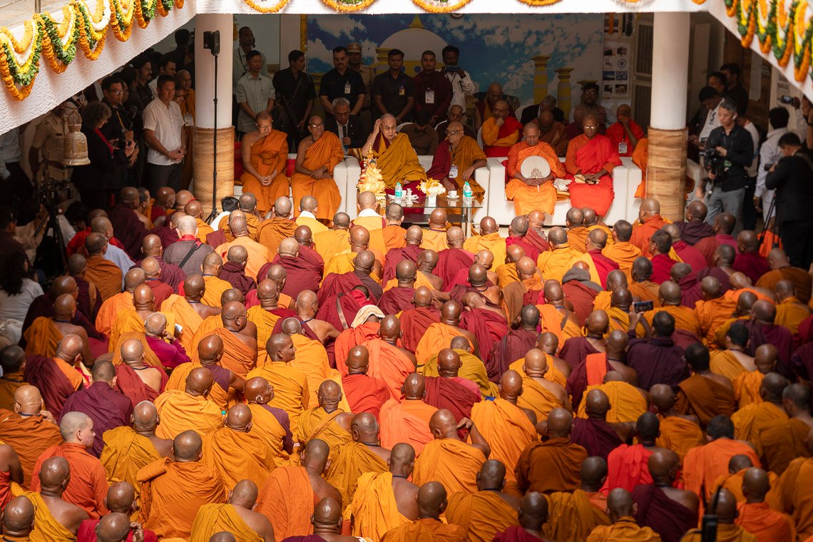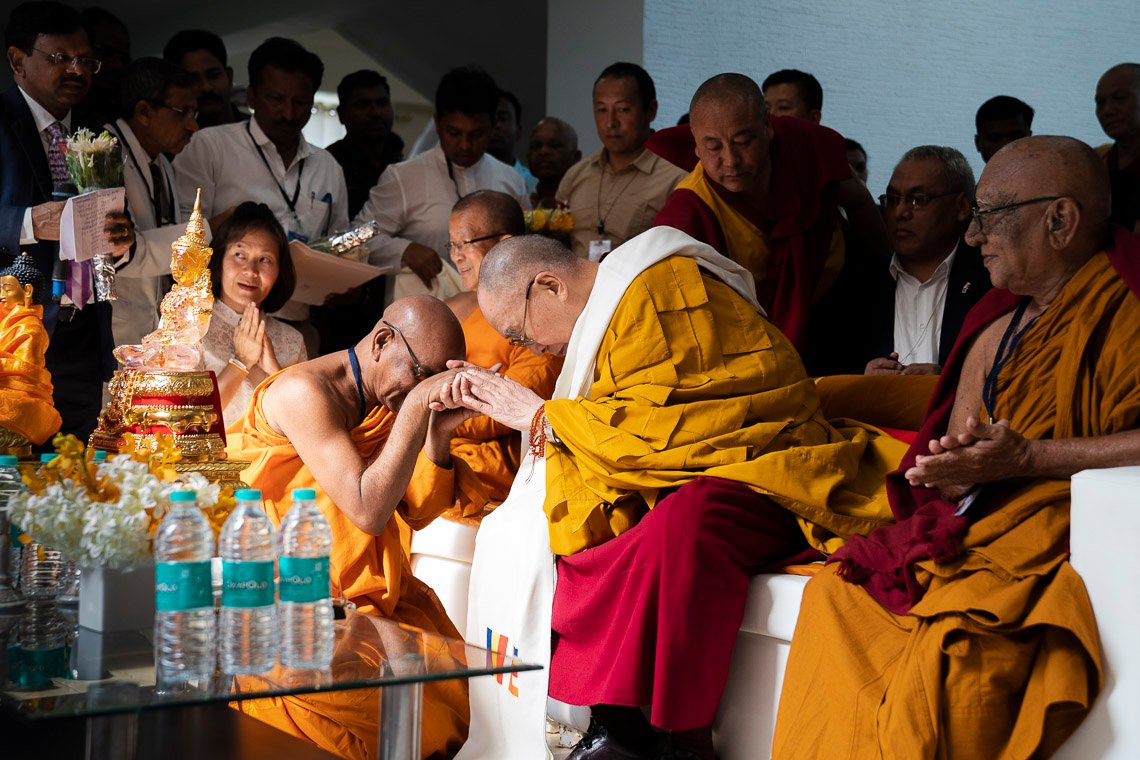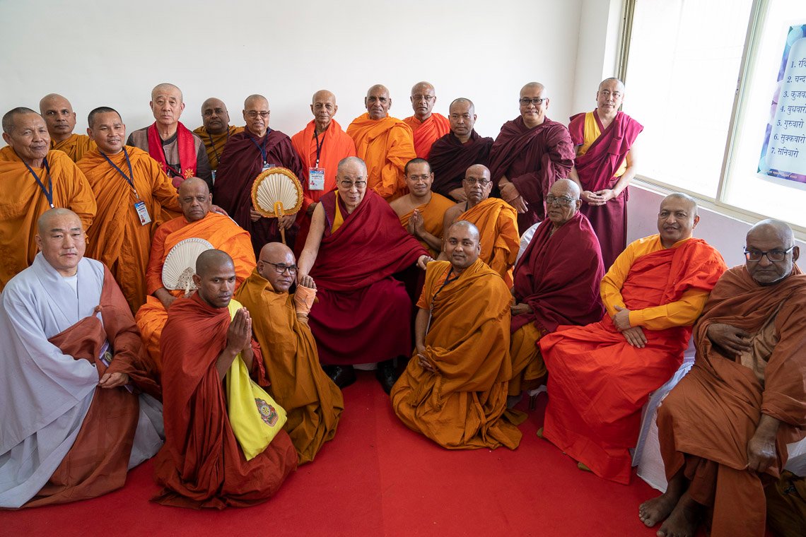 Досточтимый Бодхипало махатеро поприветствовал своих гостей и выразил признательность Его Святейшеству за визит, который он назвал благословением для буддийского сообщества индийцев. По его словам, вне зависимости от того, какой из традиций принадлежат монахи – тхераваде, махаяне или ваджраяне, – им всегда здесь рады. Он заявил, что монахам следует быть оптимистами и, в первую очередь, постигать суть учения и практиковать его. Сегодня само время диктует необходимость объединяться и проводить такие собрания, как текущий трехдневный Глобальный буддийский конгресс. Они послужат делу возрождения буддизма. Он отдал должное доктору Амбедкару, его деятельности по распространению буддизма в современном обществе и усилиям, направленным на укрепление Индии.