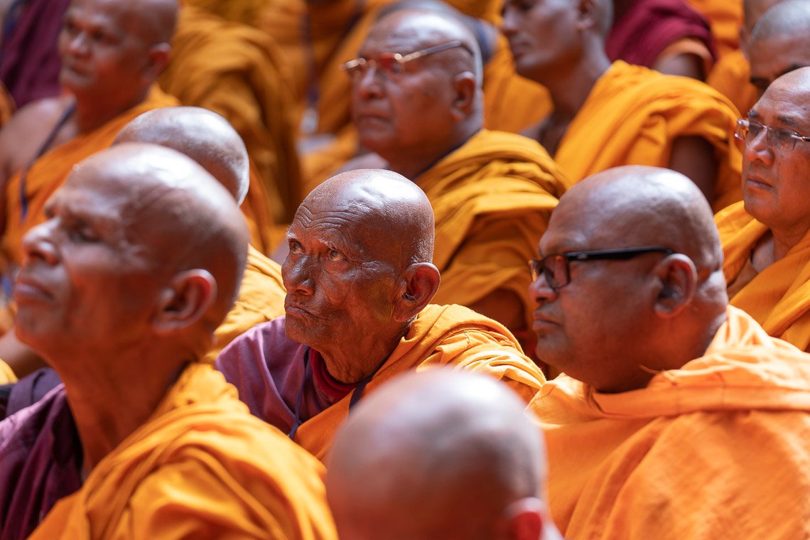 Его Святейшество рассказал, что Будда родился в царской семье, однако покинул дворец и посвятил себя монашеской жизни, приняв обеты бхикшу. Первые пять учеников Будды последовали его примеру и тоже стали бхикшу, поскольку практика нравственной дисциплины монахов и монахинь способствует преобразованию ума. Будда считал, что мужчины и женщины наделены равными способностями, и даровал посвящения бхикшу для мужчин и бхикшуни для женщин. Шесть лет он провел в аскетических условиях, практикуя медитацию и углубляя понимание реальности. В итоге он рассеял тьму неведения и достиг пробуждения, став буддой. Это наглядно демонстрирует, что фундаментом для практики служит именно нравственность. По признанию Далай-ламы, он с удовольствием узнал, что члены центра предпринимают активные шаги, дабы сохранить сангху полностью посвященных монахов бхикшу.