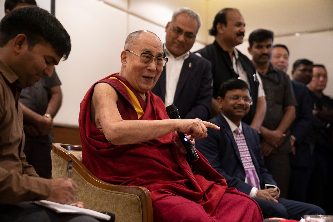 Его Святейшество Далай-лама во время пресс-конференции в Аурангабаде. Фото: Тензин Чойджор (офис ЕСДЛ).
