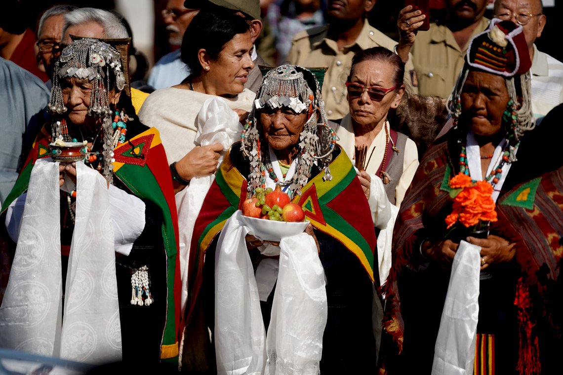 Верующие стоят вдоль дороги, ожидая прибытия Его Святейшества Далай-ламы. Фото: Лобсанг Церинг.