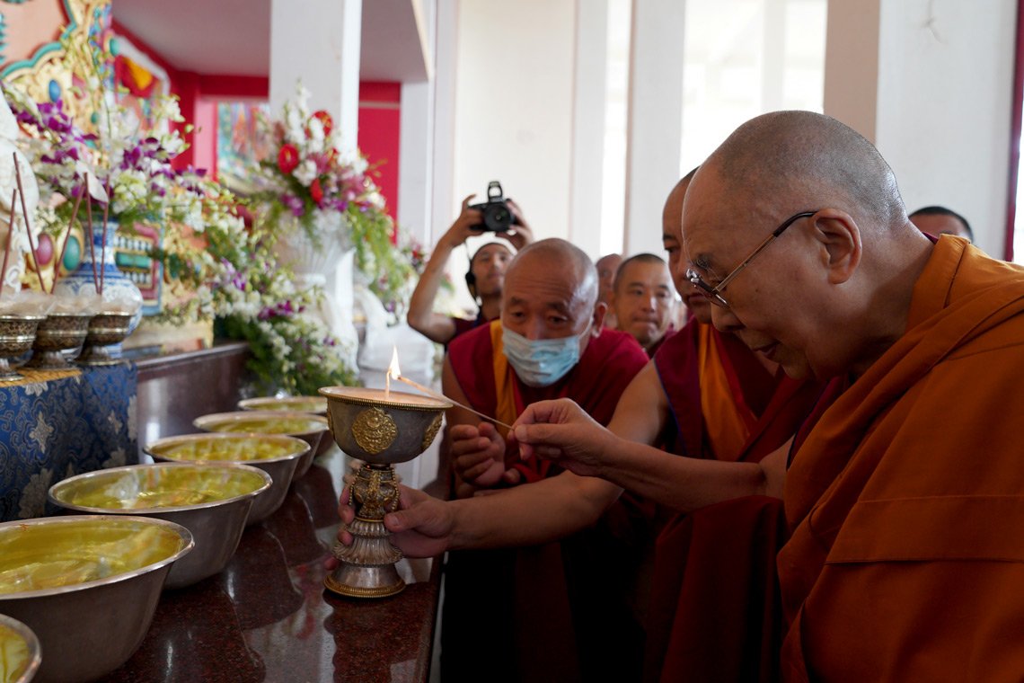 Настоятели, бывшие настоятели и тулку Гоманга тепло встретили своего духовного лидера. Далай-лама в свою очередь поприветствовал действующего держателя трона Ганден, предыдущего держателя трона, Шарпу и Джангце Чойдже, а также поздоровался с западными буддийскими учеными и учеными из университета Эмори. Он провел краткую церемонию освящения статуй и тханок, зажег перед ними масляную лампаду, после чего занял свое место в удобном кресле.