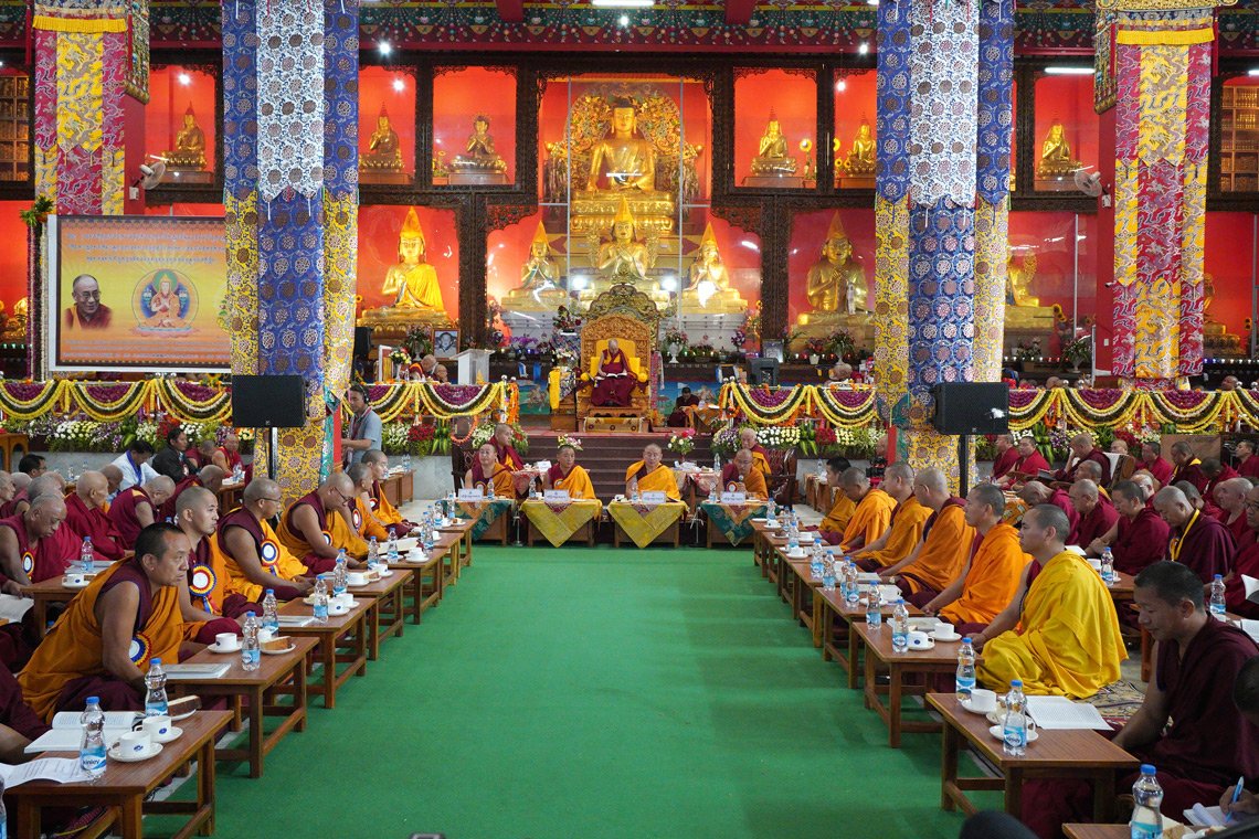 Вид на зал собраний монастыря Дрепунг Лоселинг во время симпозиума по трактату Арьядевы «400 строф о срединности». Фото: Лобсанг Церинг.