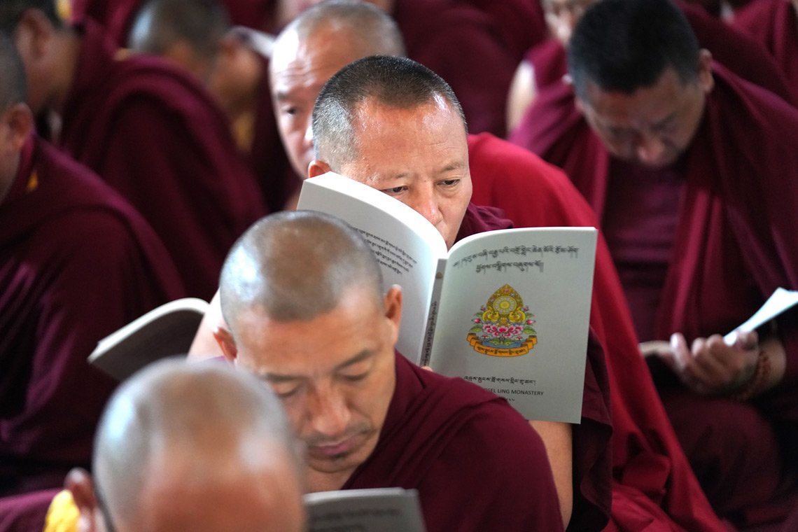 Дхардо Тулку объявил, что Дрепунг Лоселинг имеет честь принимать у себя главного гостя, Его Святейшество Далай-ламу, и с радостью приветствует в своих стенах Гандена Трипу, Гандена Трисура, Шарпу и Джангце Чойдже, Дрепунга Трипу, настоятеля Лоселинга, а также других настоятелей и тулку.