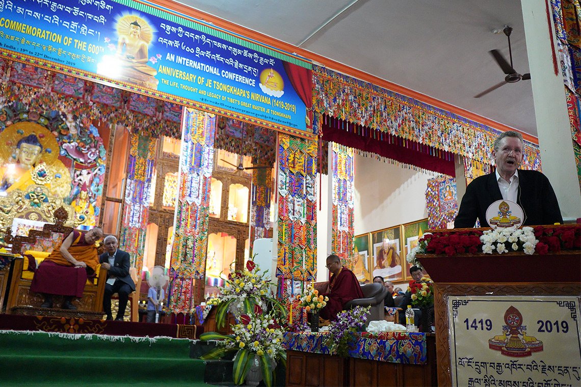 Профессор Дональд С. Лопес выступает с докладом во время открытия международной конференции «Чже Цонкапа: жизнь, философия и наследие». Фото: Лобсанг Церинг.