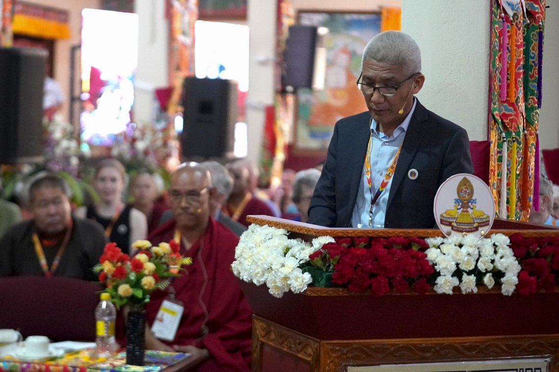 Тхуптен Джинпа рассказывает о международной конференции «Чже Цонкапа: жизнь, философия и наследие». Фото: Лобсанг Церинг.