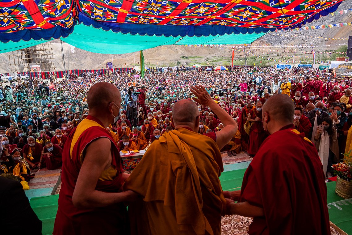 Во время учений Его Святейшества Далай-ламы, на которые собралось примерно 3000 слушателей. Лингшед, Ле, Ладак. 10 августа 2022 г. Фото: Тензин Чойджор (офис ЕСДЛ).