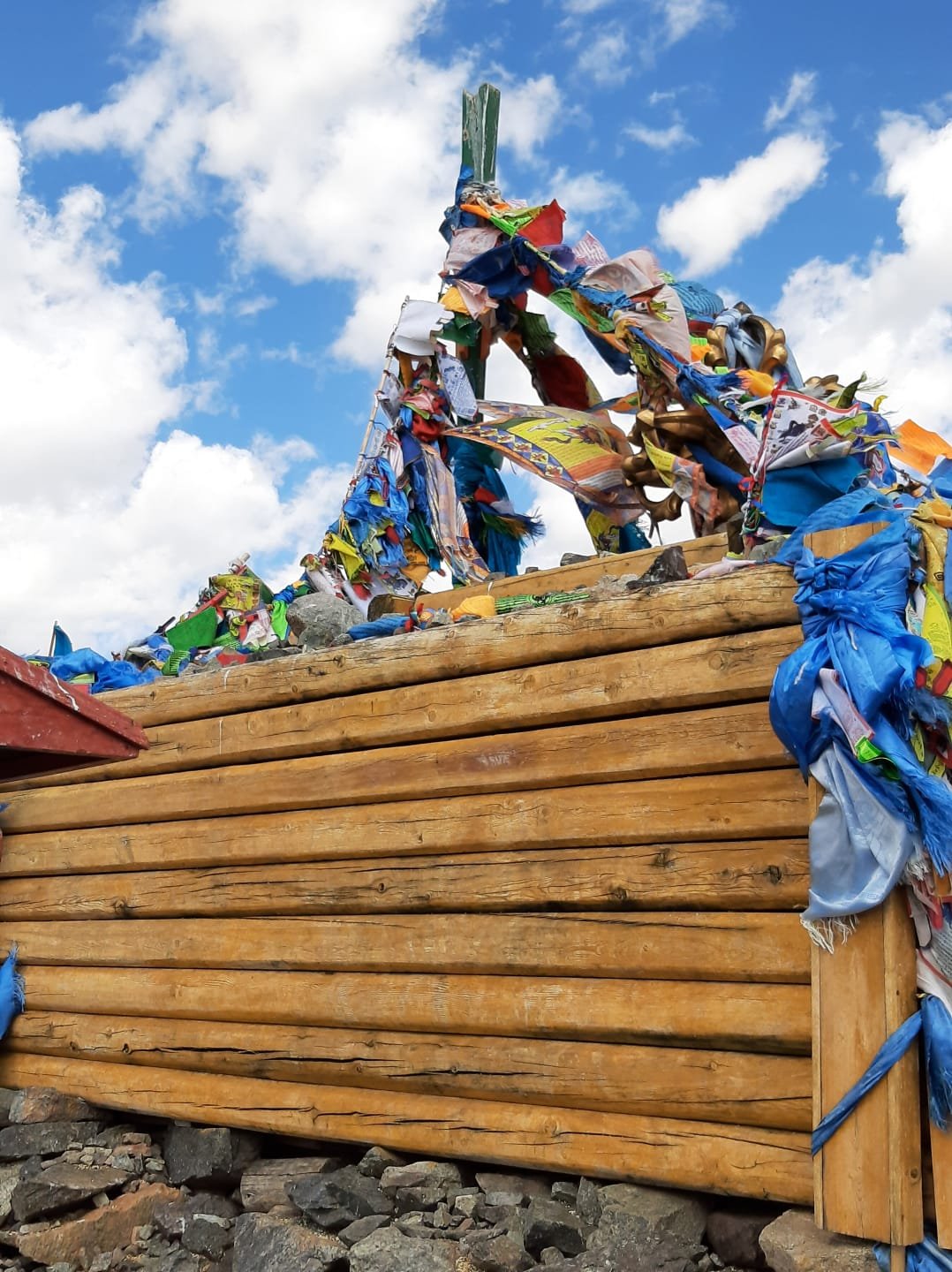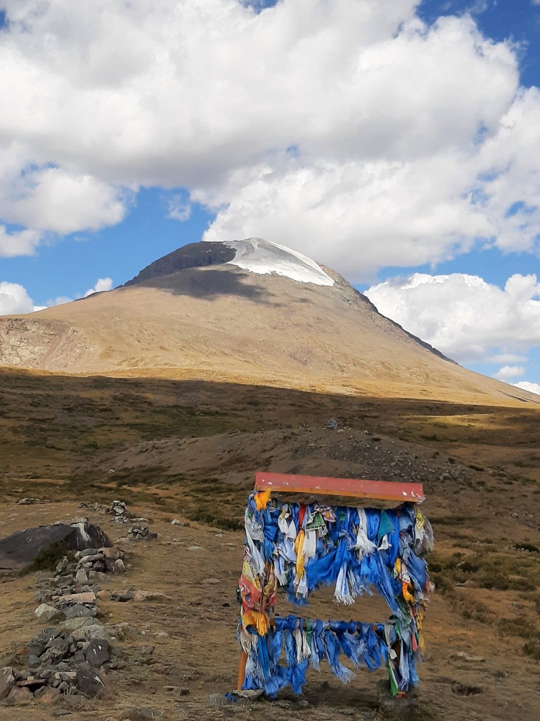 «По виду она напоминает Кайлаш, — рассказал Ринпоче, — и считается в Монголии святым местом, связанным с буддийским божеством Ваджрапани. У подножия горы раскинулось озеро, оттуда нужно подниматься вверх, на этот раз я ехал верхом на лошади».