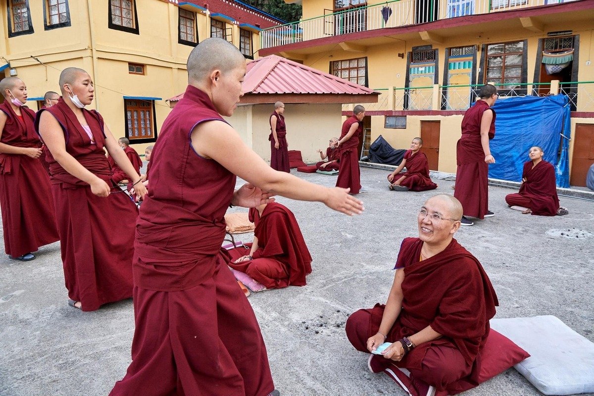 Тибетские буддийские монахини во время философских диспутов. Фото: Tenzin Sangmo.
