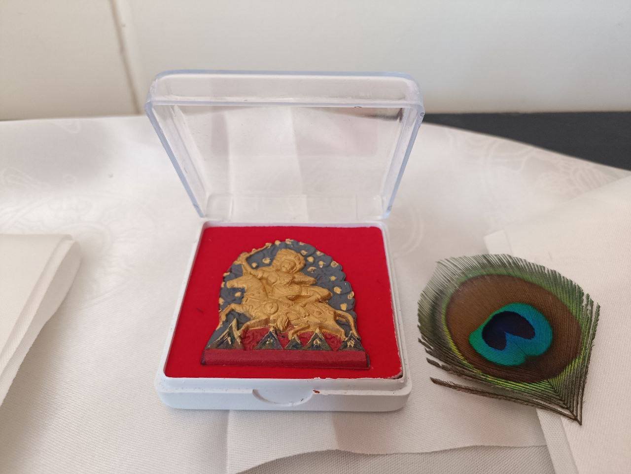 Кроме того, делегация из Калмыкии поднесла Его Святейшеству книгу Геннадия Корнеева «Священные знамена ойратов и калмыков», а Далай-лама благословил и подарил калмыцкому народу священную статую, которая отныне будет храниться в Центральном хуруле Калмыкии, и все верующие смогут поклоняться ей.