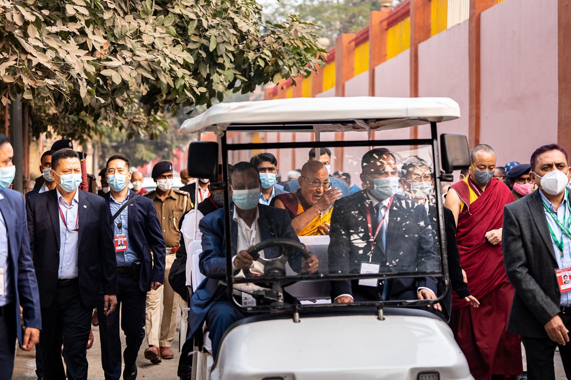 Его Святейшество Далай-лама направляется в тайский храм Ват Па. Бодхгая, штат Бихар, Индия. 27 декабря 2022 г. Фото: Тензин Чойджор (офис ЕСДЛ).