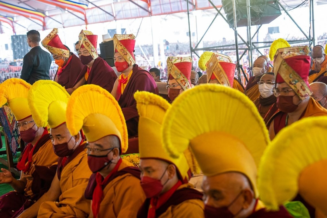 Сегодняшний молебен о долгой жизни был основан на тексте «Подношение духовному учителю» (лама чопа). В самом начале более 16 000 монахов и монахинь, многие из которых представляли Гималайские регионы, провели подготовительный ритуал самопорождения. Затем Его Святейшество обратился к слушателям.