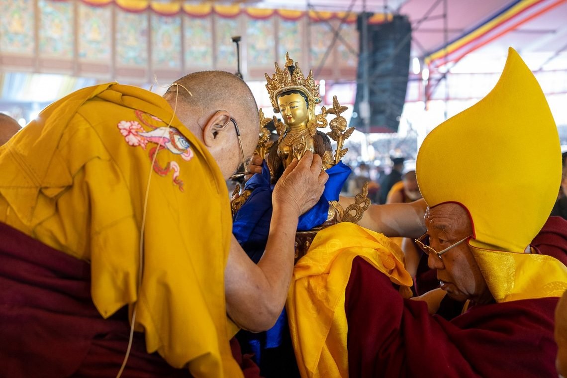 В определенный момент в ходе ритуала Гаден Три Ринпоче, Шарпа Чодже и Джангце Чодже вышли вперед, чтобы поднести Его Святейшеству мандалу, символ вселенной. В то время как тибетские исполнители пели и танцевали на площадке, а артистка из Монголии играла на скрипке у края сцены, Гаден Три Ринпоче зачитал хвалу жизни Его Святейшества и попросил его как можно дольше пребывать в этом мире.