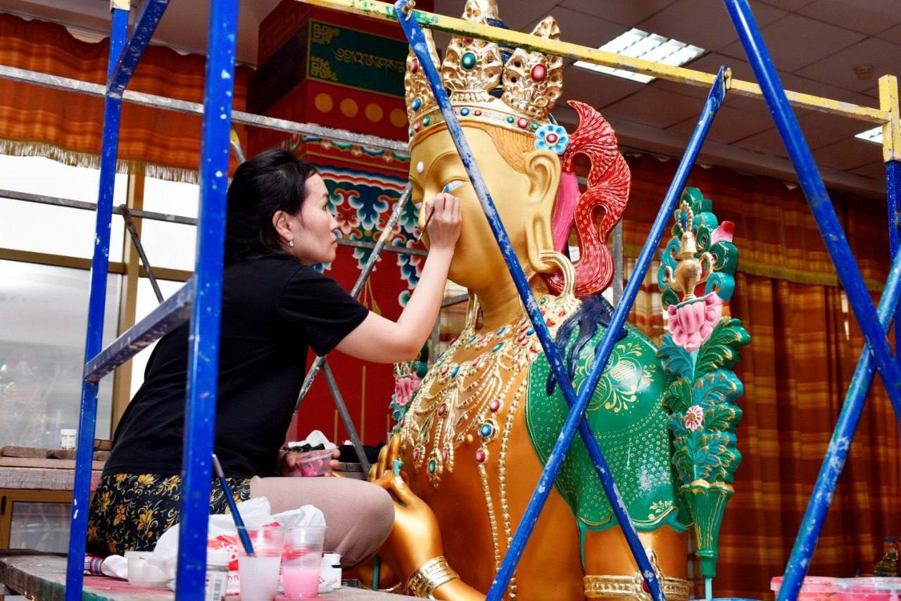 Танкописец Татьяна Музраева и Амра Дорджи-Горяева вели кропотливую работу на протяжении почти двух месяцев. Накануне состоялся один из важных этапов – «открытие глаз» статуи.