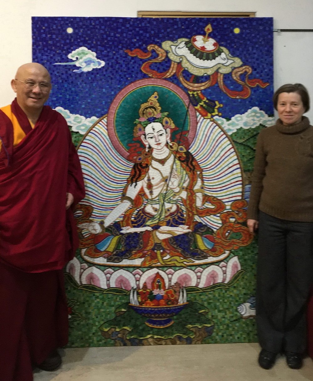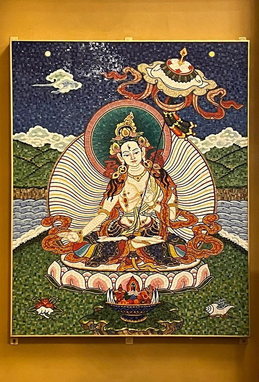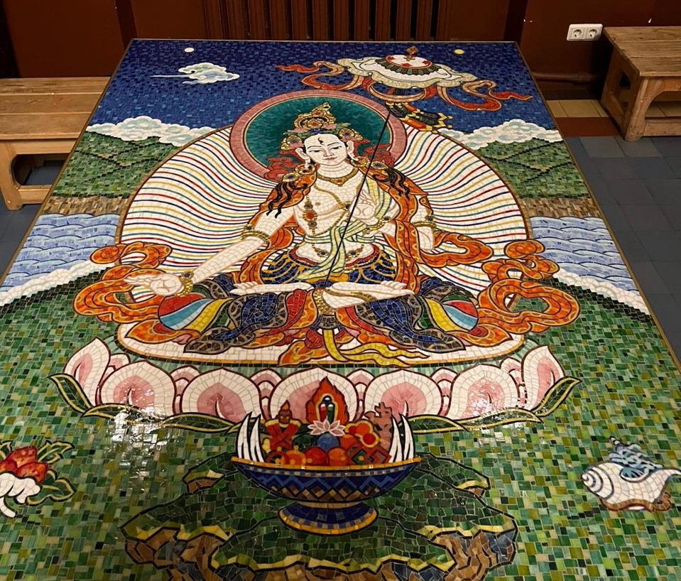 Созерцать и практиковать перед прекрасным священным образом Белозонтичной Тары теперь может каждый прихожанин и посетитель петербургского Дацана Гунзэчойнэй: в одной из ниш в стене алтарного зала разместилось новое мозаичное панно с образом Ситатапатры.