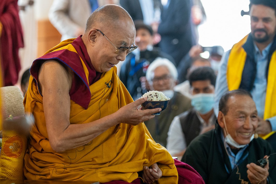 «Как я уже отметил, вы, ладакцы, преисполнены сильной веры и преданности. Благодаря этому, видя меня, вы чувствуете себя счастливыми, и я тем самым тоже счастлив. Я счастлив видеть всех вас, монахов и мирян».