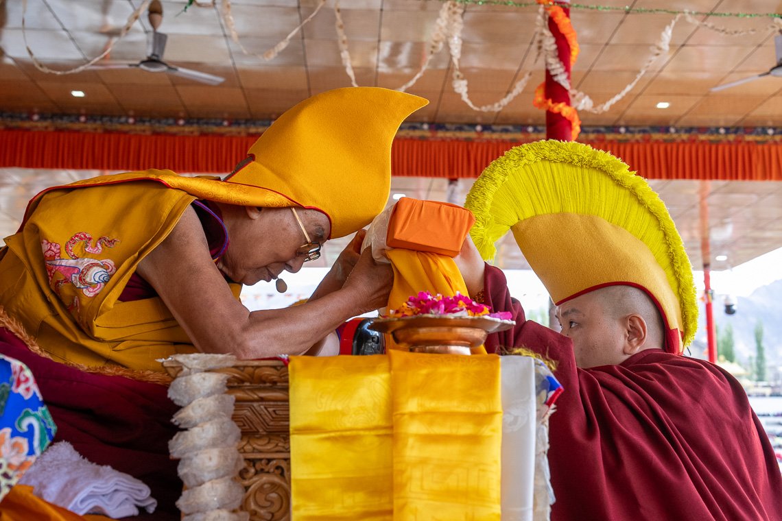 В знак благодарности за участие в сегодняшней церемонии представители организаторов, в том числе Ассоциации буддистов Ладака и Ассоциации ладакских монастырей, поднесли Его Святейшеству мандалу и символы пробужденных тела, речи и ума.