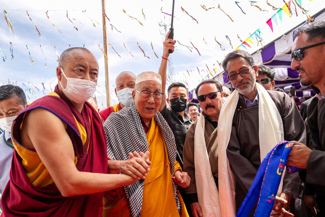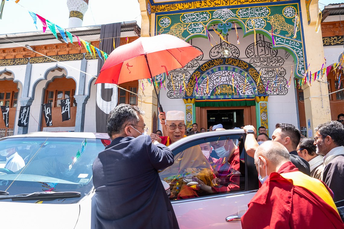 Его Святейшество Далай-лама прибывает в мечеть «Имам Барга». Ле, Ладак, Индия. 12 августа 2023 г. Фото: Тензин Чойджор (офис ЕСДЛ).