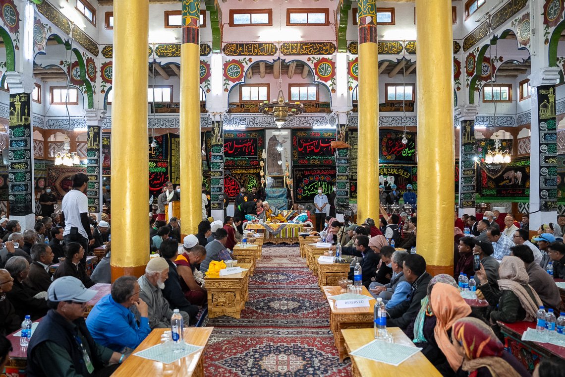 Вид на зал мечети «Имам Барга» во время встречи Его Святейшества Далай-ламы с членами мусульманской общины. Ле, Ладак, Индия. 12 августа 2023 г. Фото: Тензин Чойджор (офис ЕСДЛ).