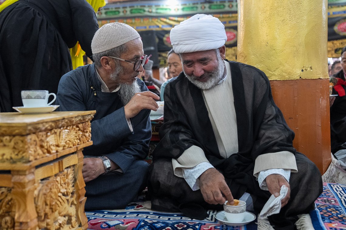Его Святейшество и другие гости вместе пообедали. По завершении встречи, когда Далай-лама уже хотел встать и отправиться к выходу, несколько членов общины подошли к нему, чтобы попросить благословения. Покидая мечеть, Его Святейшество улыбался и махал людям, стоявшим по обе стороны прохода, и они радостно улыбались в ответ. Пока он ехал через деревню Чучот Йокма и Чогламсар, вдоль дороги стояли доброжелатели с шелковыми хадаками и свежими цветами. Они надеялись хоть мельком увидеть духовного лидера. Всего через несколько минут Далай-лама уже переступил порог своей резиденции.