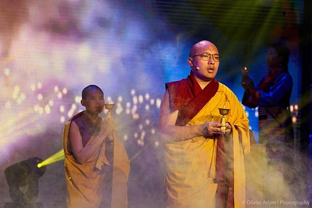 Семнадцатый Гьялванг Кармапа Оргьен Тринле Дордже принимает участие в Марме Монламе (подношении светильников), завершающем молитвенные собрания линии кагью. Фото: Оливье Адам