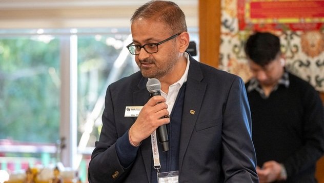 Виджай Хатри выступает с заключительным словом по завершении встречи Его Святейшества Далай-ламы с молодыми лидерами, участвующими в стипендиальной программе им. Далай-ламы, и прибывшей с ними группой приглашенных гостей. Дхарамсала, штат Химачал-Прадеш, Индия. 20 марта 2024 г. Фото: дост. Замлинг Норбу (офис ЕСДЛ).
