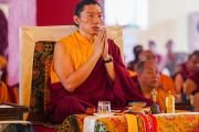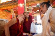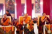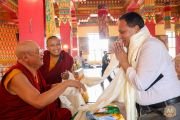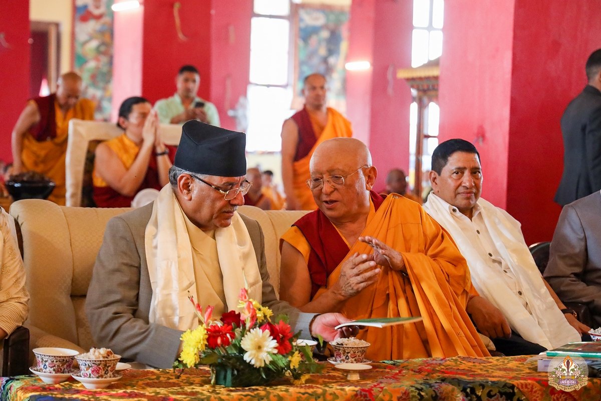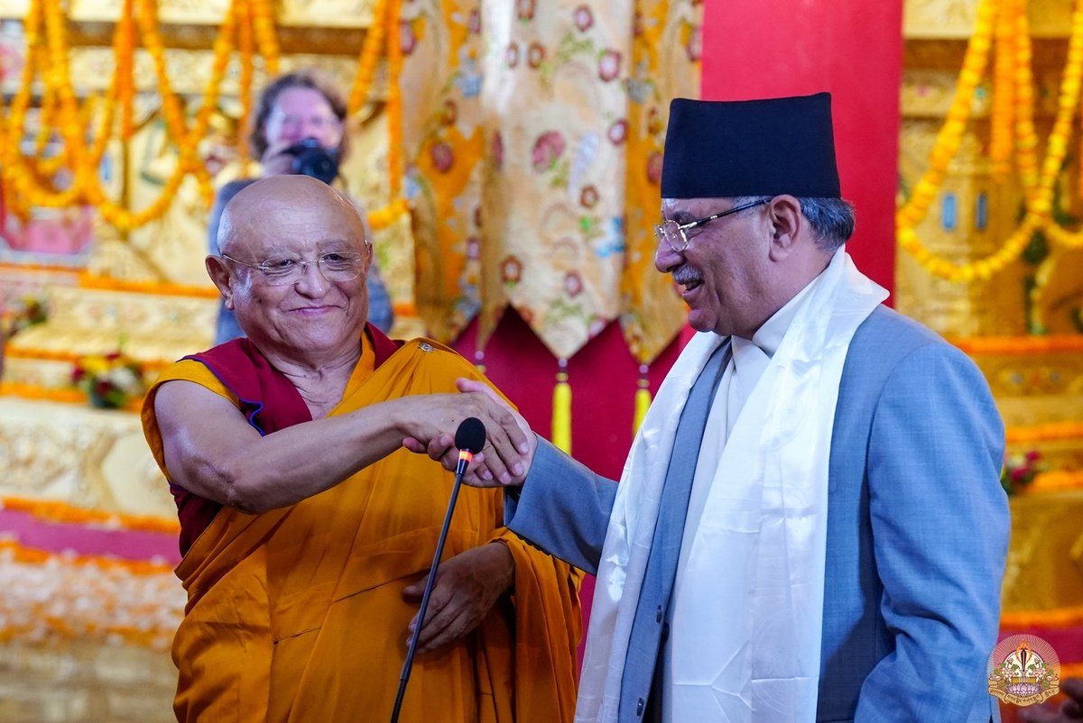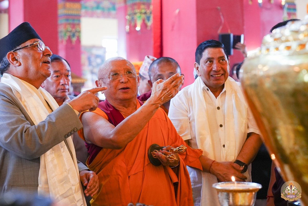 К собравшимся с приветственными словами обратились досточтимый Чокьи Ньима Ринпоче и почетный гость церемонии премьер-министр Непала Пушпа Камал Дахал.