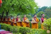 Монахи совершили освящение и установку тысячи полуметровых золотых статуй Будды, прочитали Собрание Слова Будды (Кангьюр Дакдрок) и вознесли множество молитв.
