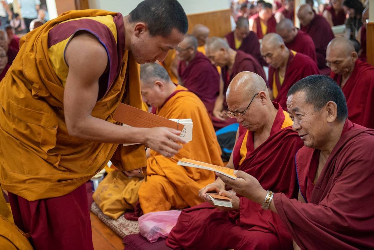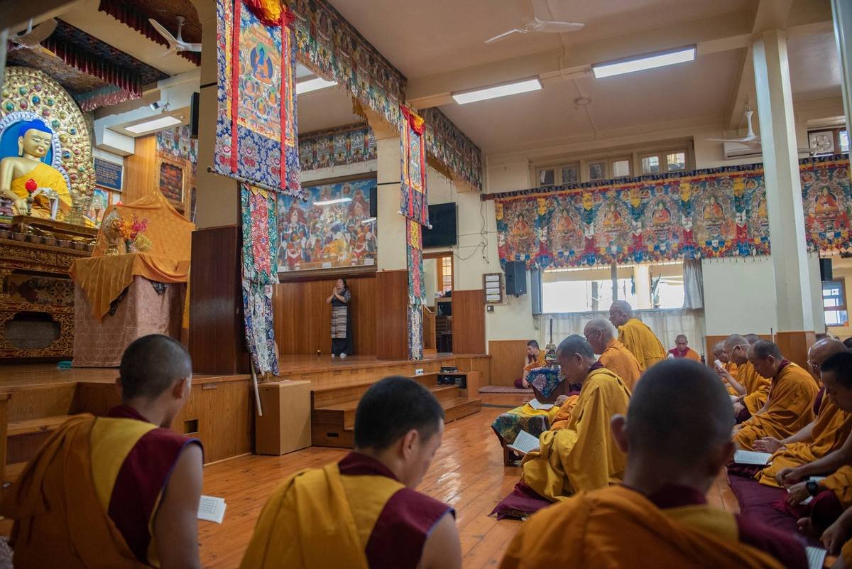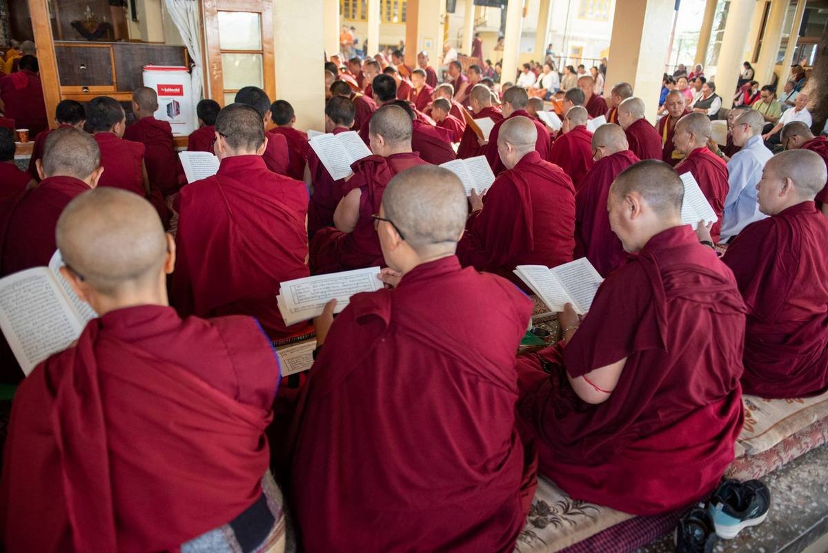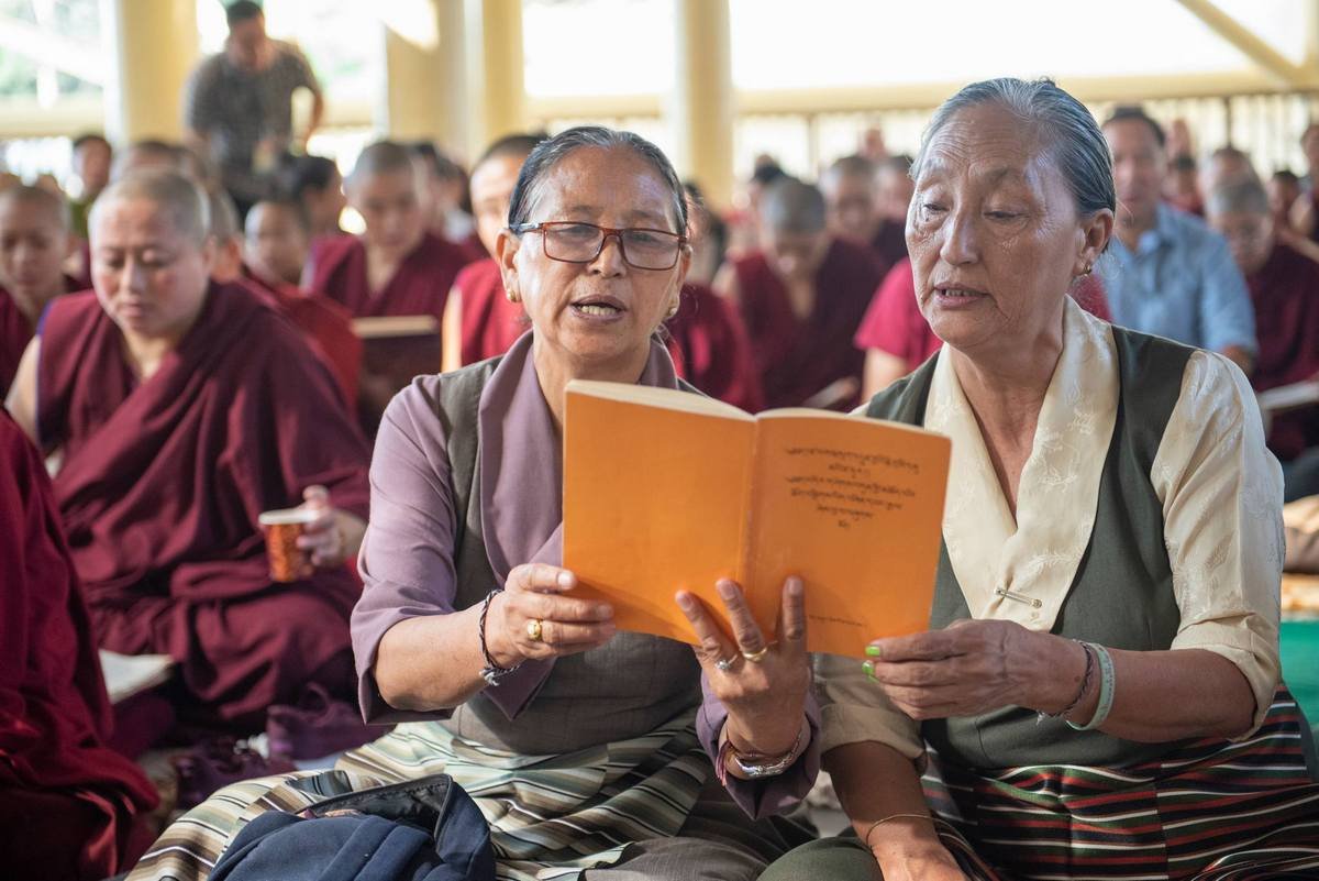 В молитвенном собрании принимают участие монахи и монахини из соседних мужских и женских монастырей, а также представители местного тибетского сообщества и другие последователи Его Святейшества.