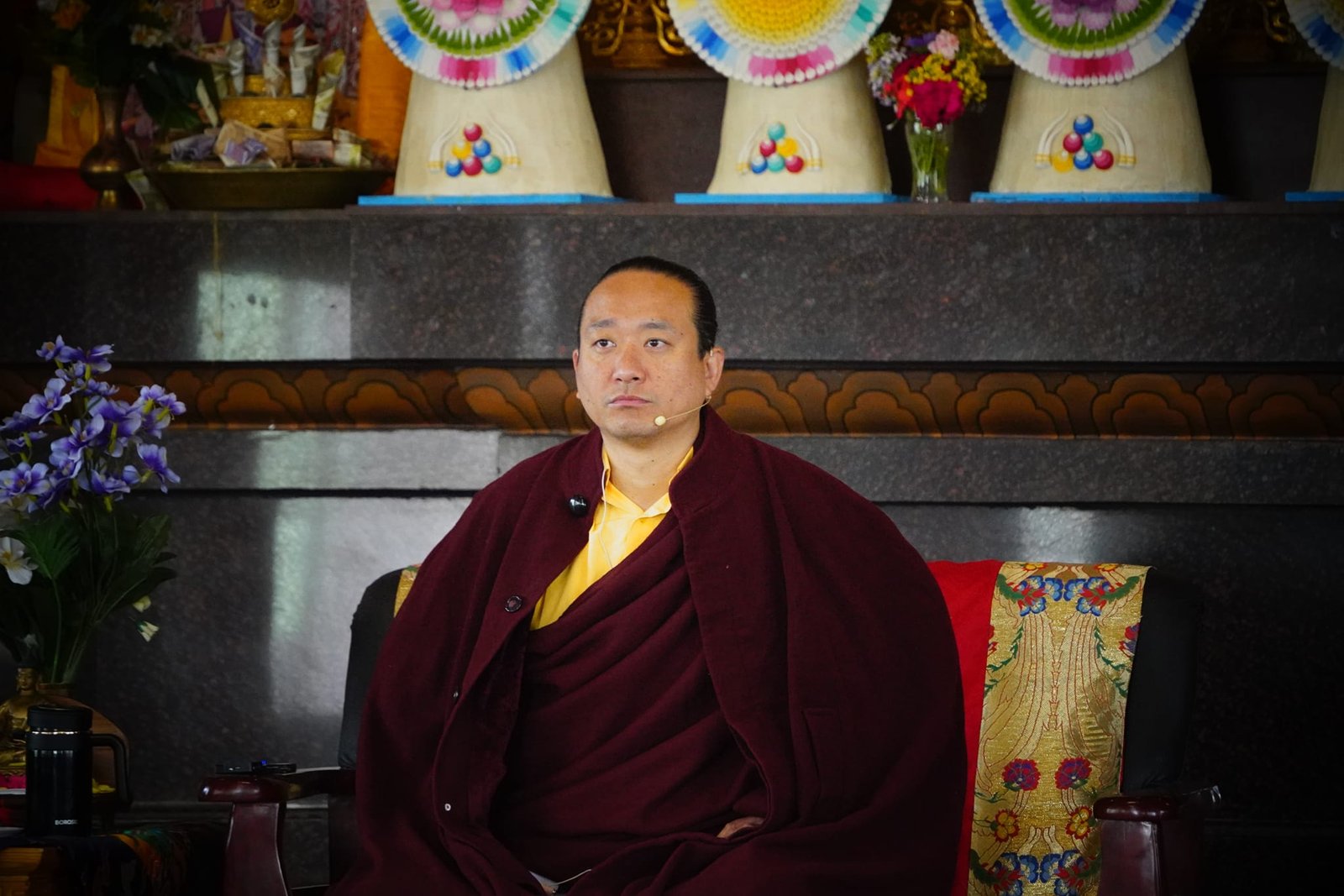 В монастыре Каза Ринпоче выступил с публичной беседой в рамках которой коснулся таких важных тем как нравственное поведение, буддийские ценности, культура, самобытность, окружающая среда, а также вопросов здоровья и вреда от различного рода зависимостей.