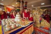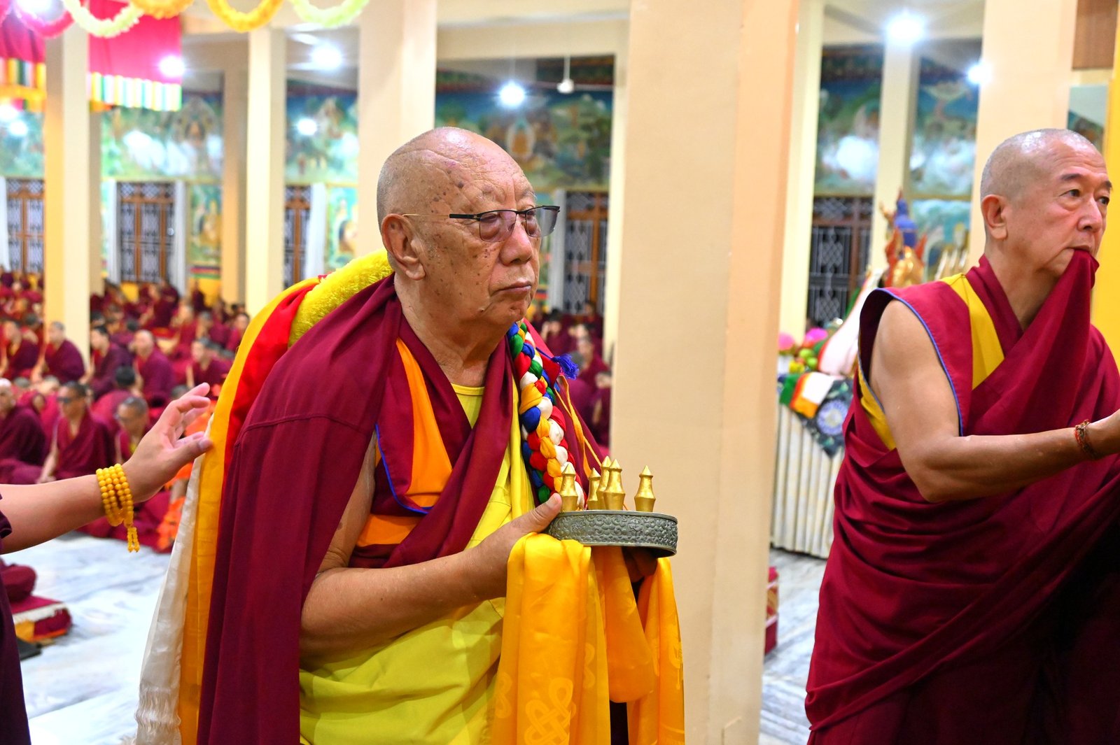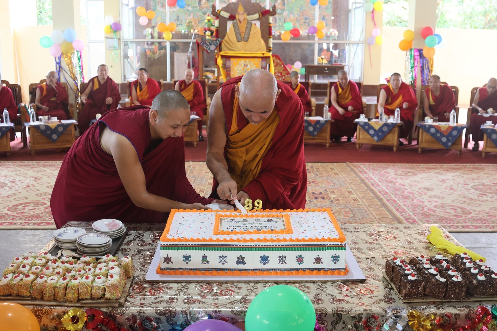 В монастыре Сера Дже в Индии в большой праздничной церемонии приняли участие настоятель монастыря, а также бывшие настоятели, главный дисциплинарный наставник, мастер песнопений, главы кхангценов. Праздничная церемония началась с приглашения образа Его Святейшества – традиционного шествия с портретом Его Святейшества Далай-ламы, ритуала подношения мандалы и хадаков (ритуальных шарфов), разрезания торта, после которых собравшихся угостили чаем и традиционным праздничным блюдом из сладкого риса.