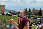 В июле в Россию прибыла большая делегация монахов из монастыря Гьюто (Индия). Пятнадцать монахов–представителей тантрического монастыря Палден Гьюто прибыли в Россию по приглашению досточтимого Еше Лодоя Ринпоче для участия в юбилейных торжествах по случаю двадцатилетия дацана.