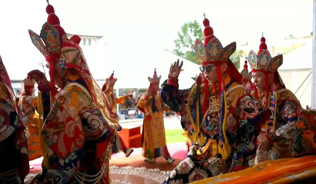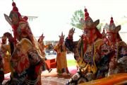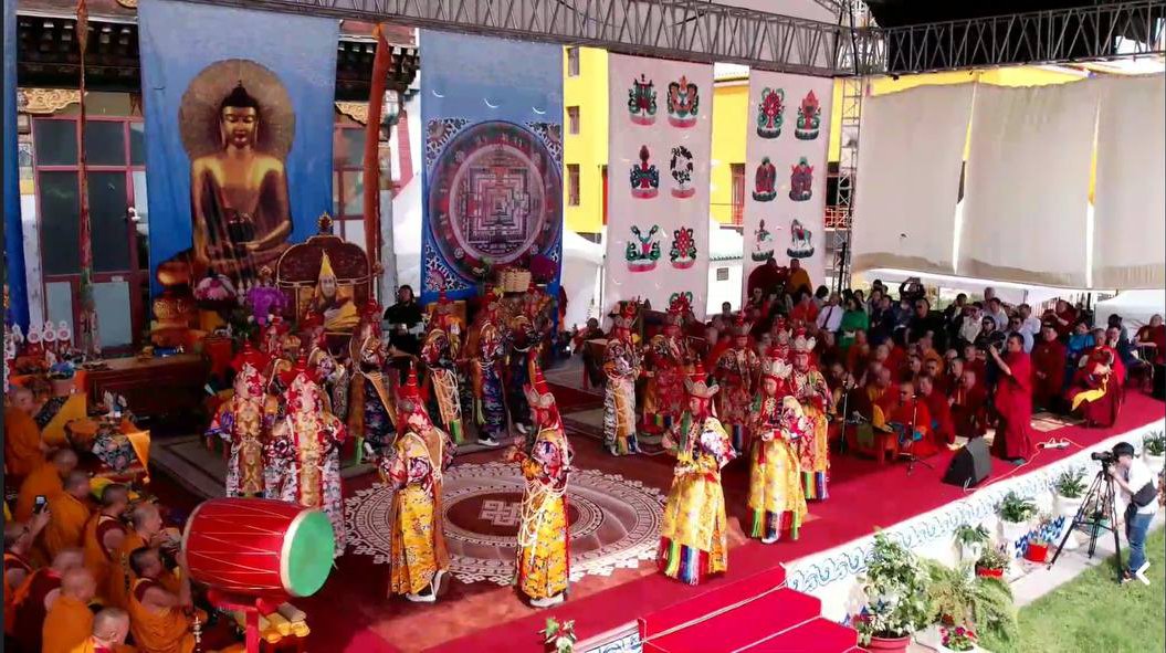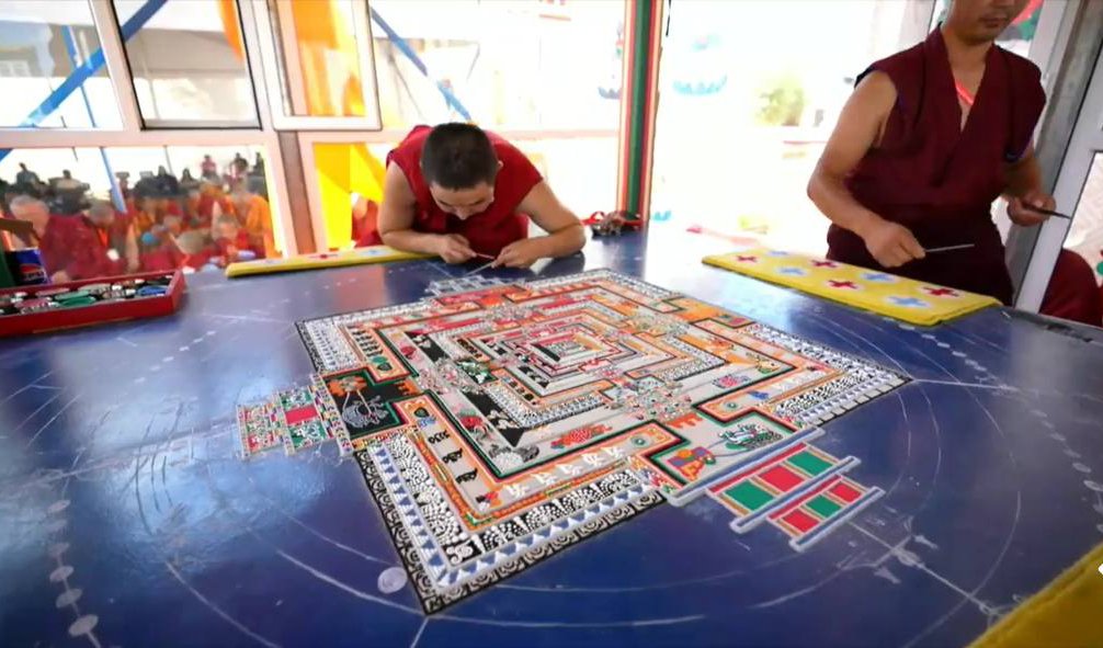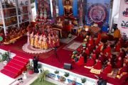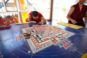 Сегодня совершаются подношения танцев и музыки божествам мандалы Калачакры. Песочная мандала Калачакры уже полностью завершена и божества приглашены в песочный дворец. С опорой на песочную мандалу будет даровано посвящение.