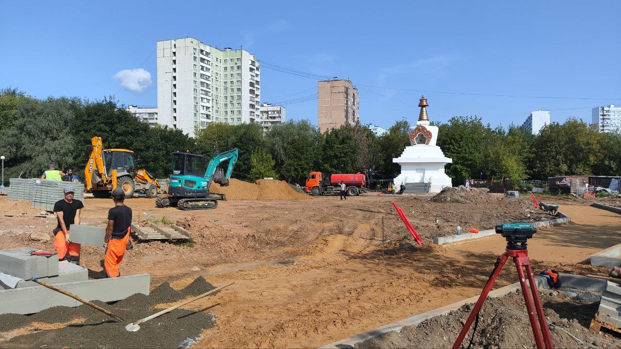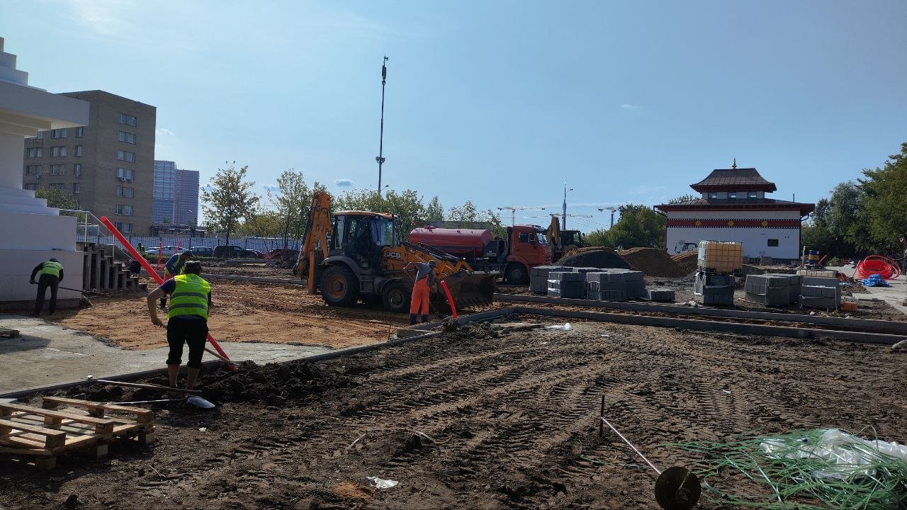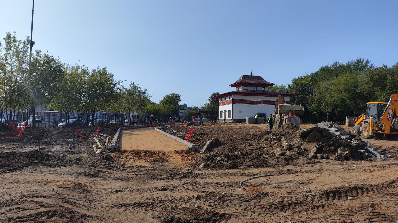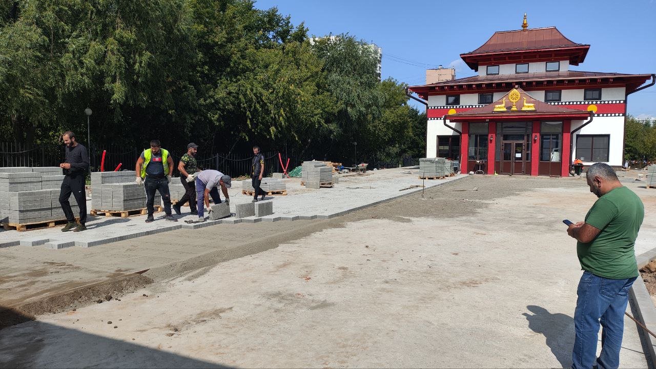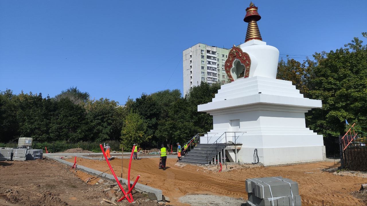 Благоустройство территории московского буддийского храма «Тубден Шедублинг» в самом разгаре. Как сообщает председатель Центрального духовного управления буддистов геше Йонтен, работы должны быть завершены через две недели, после чего храмовый комплекс станет любимым местом для буддистов Москвы: «Уже совсем скоро, всего через две недели, мы сможем любоваться нашим храмовым комплексом, совершать обходы храма и ступы по удобным дорожкам, медитировать на зеленом газоне, отдыхать на скамейках в гармонии и умиротворении. Уверен, что это станет любимым местом всех буддистов Москвы».