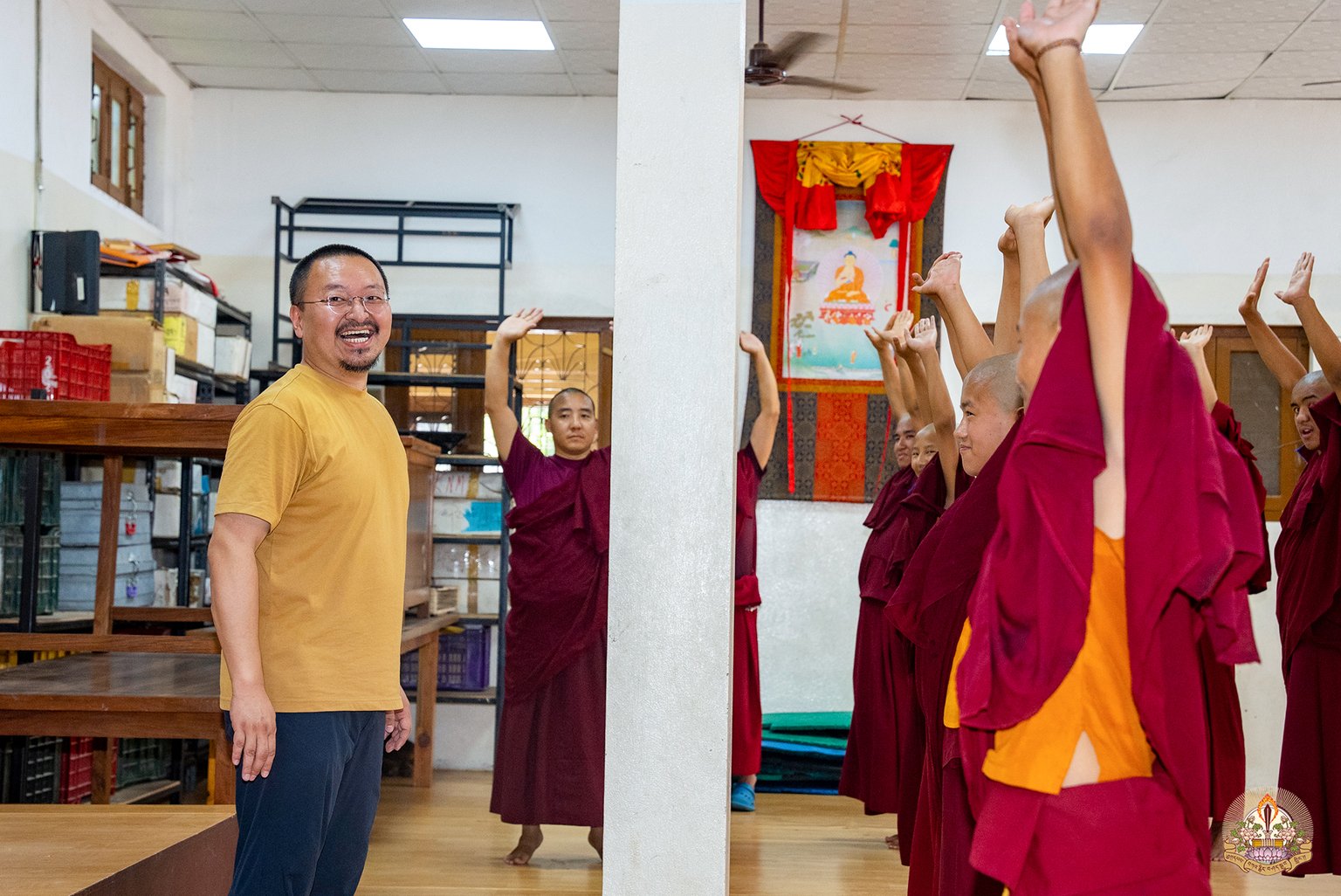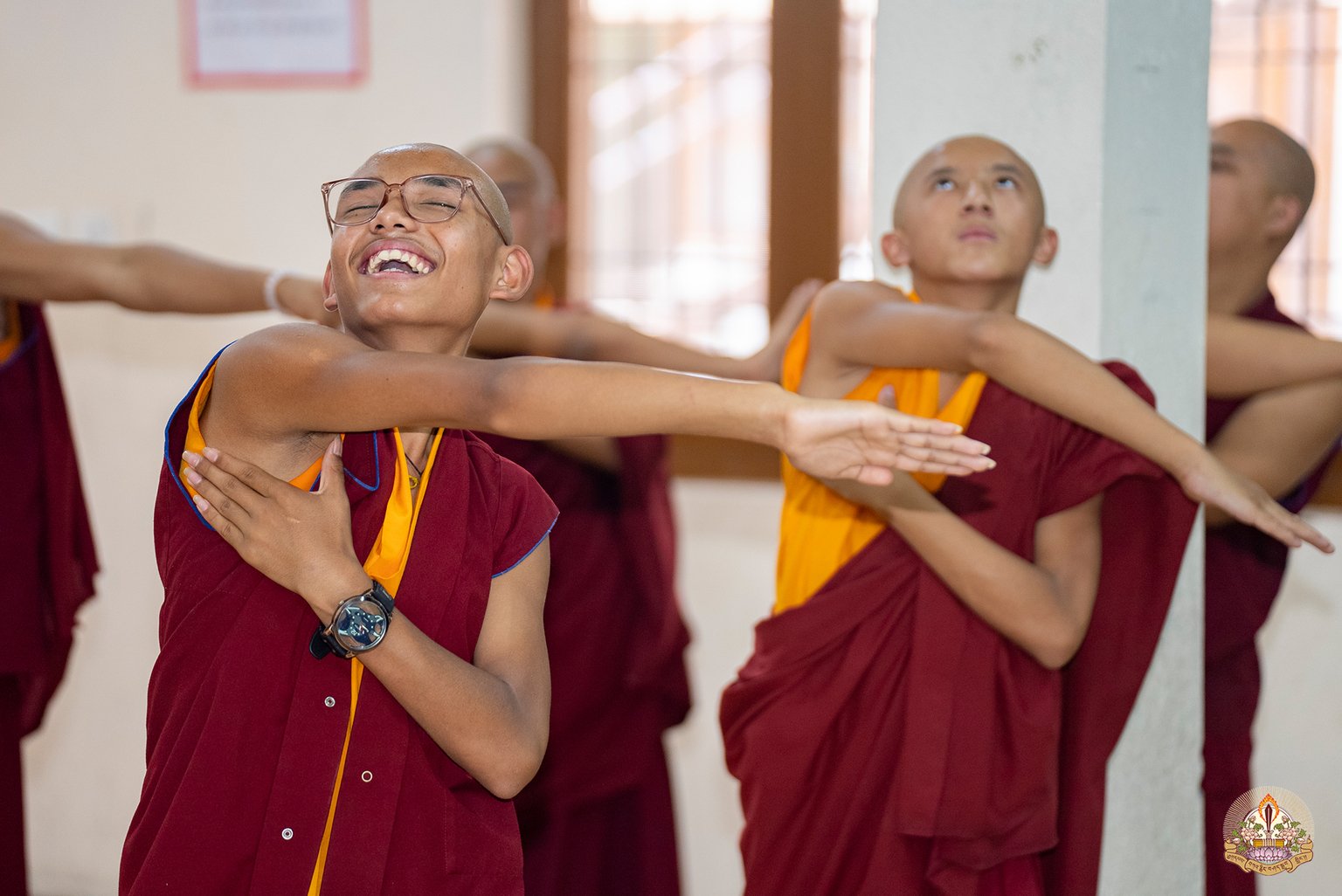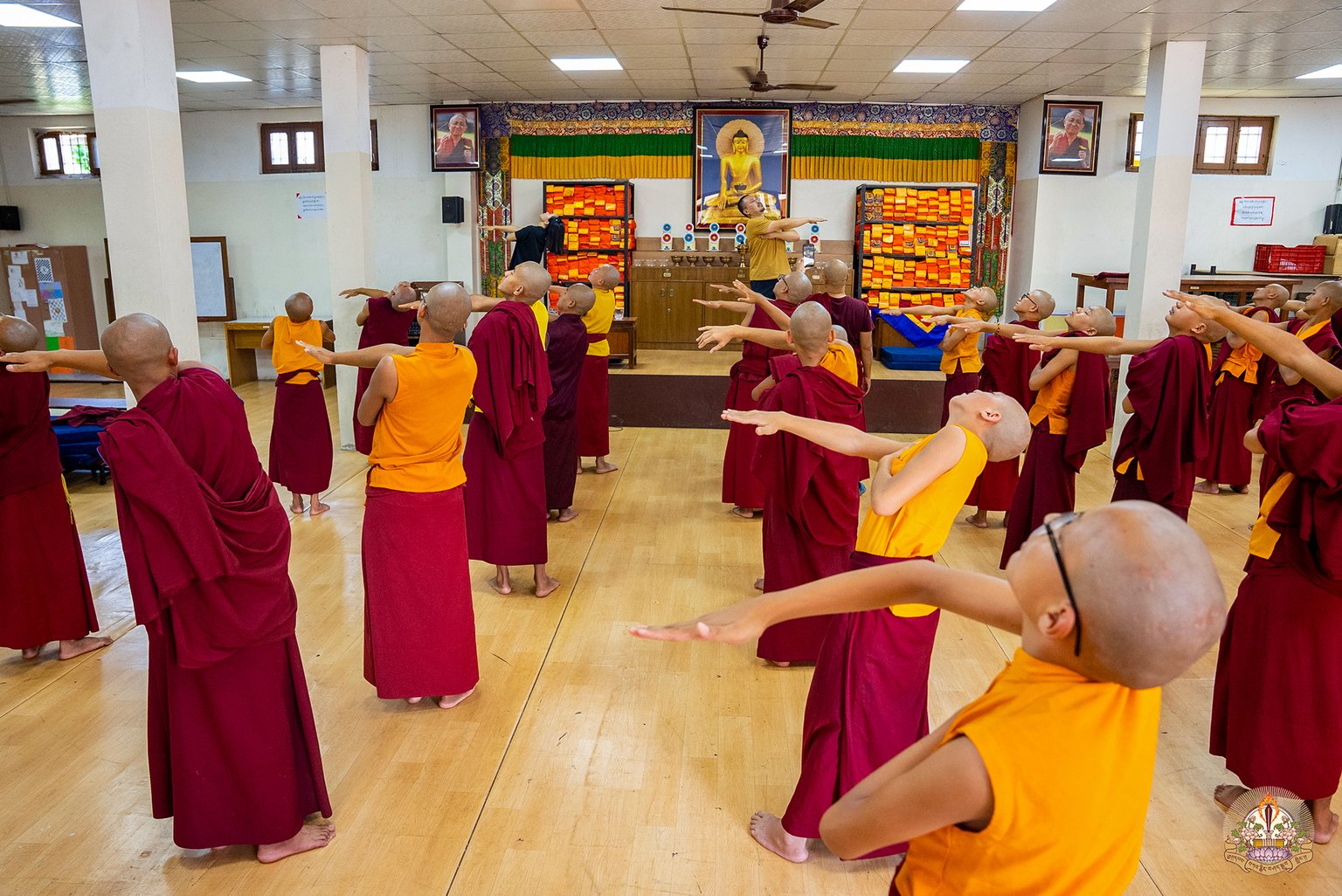 Йога, которой обучают монахов, состоит из 10 частей и преподается в ходе интенсивного 5-дневного тренинга. Эта практика призвана подготовить тело к медитации, работая на трех уровнях: тела, энергии и ума.