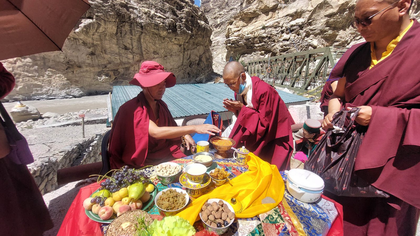 По завершении пятидневной дхармической программы монашеские общины и местное население совершили подношение Ринпоче благодарственной мандалы и трех священных изображений тела, речи и ума будды.