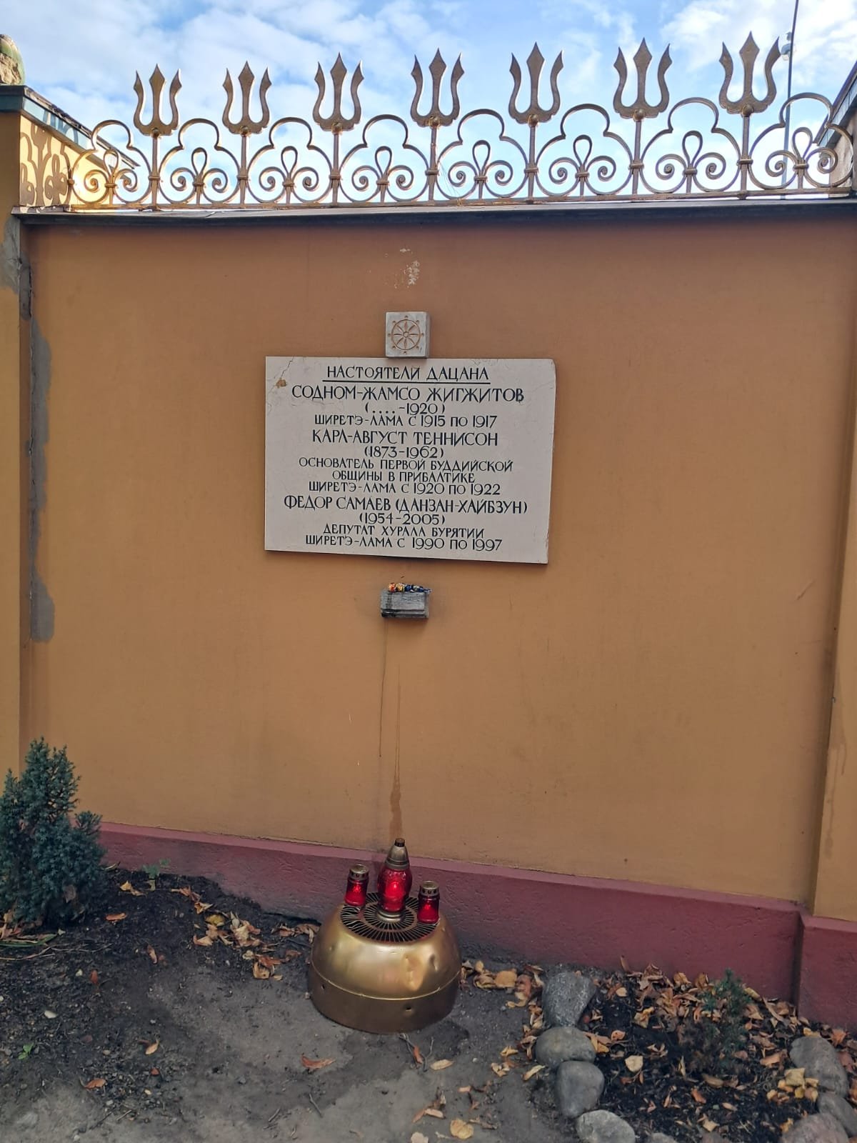 Как рассказал Мойке78 реставратор Александр Лебедев, он окончил также золотое торцевание двух львов во дворе культового здания и фрагментальное золочение забора. Реставрации подверглась и надвратная табличка «Дацан».